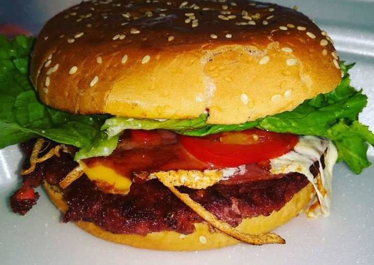 Doble carne, doble queso americano, doble jamón de pavo, queso philadelphia, aderezo blue cheese, verduras, papas fritas y lemon pepper.