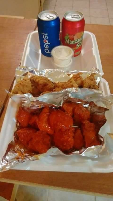 1kl de boneles 100% pechuga de pollo 😋🐔 bañados en una deliciosa salsa de queso 🧀con jalapeño cremosa papás 🍟y aderezo ranch 😋