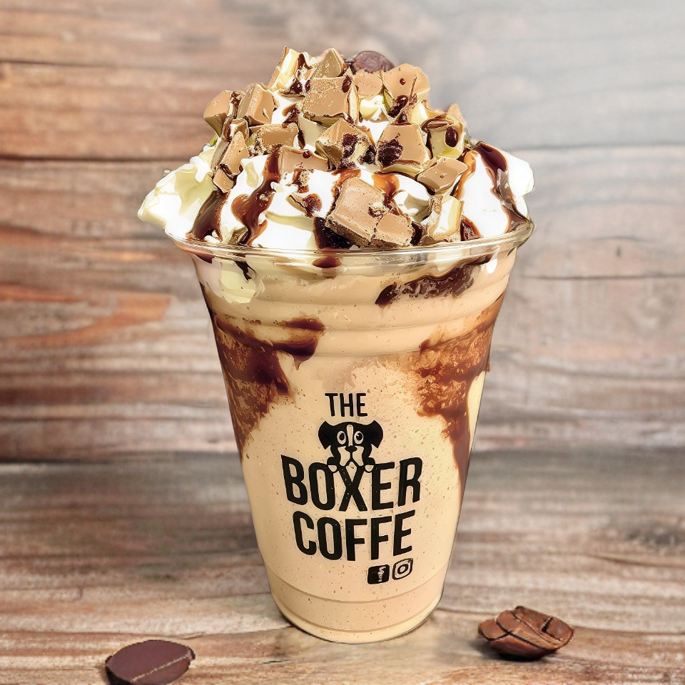 Nuestro frappe mas vendido en los eventos Masivos acompañado de un pastelito Kinder Delice. La presentacion del frappe puede variar al ser envio a domicilio y diferir al que entregamos en el local.