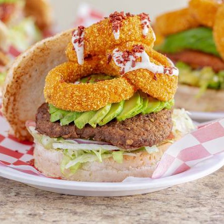 Pechuga de pollo empanizada y bañada en salsa bufalo spicy, pan brioche hecho en horno de leña,tocino, queso de la casa, tomate, lechuga, aderezo ranch, incluye papas a la francesa