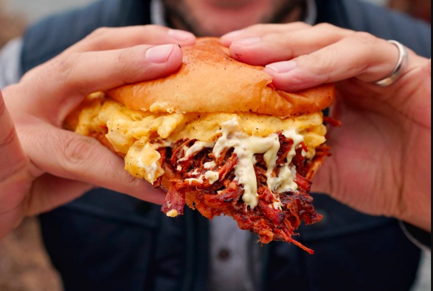 Best in town" Tocino, lechuga, tomate,aderezo tocino, Pan Brioche Hecho en casa,