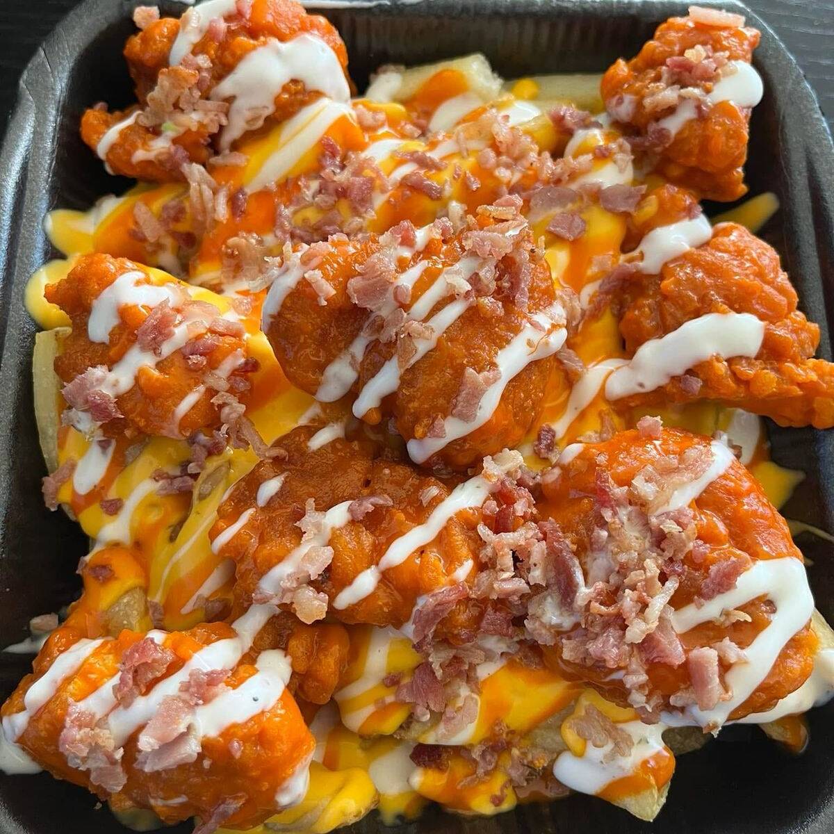 Medio kilo de papas bañadas en queso, búfalo, ranch y tocino.