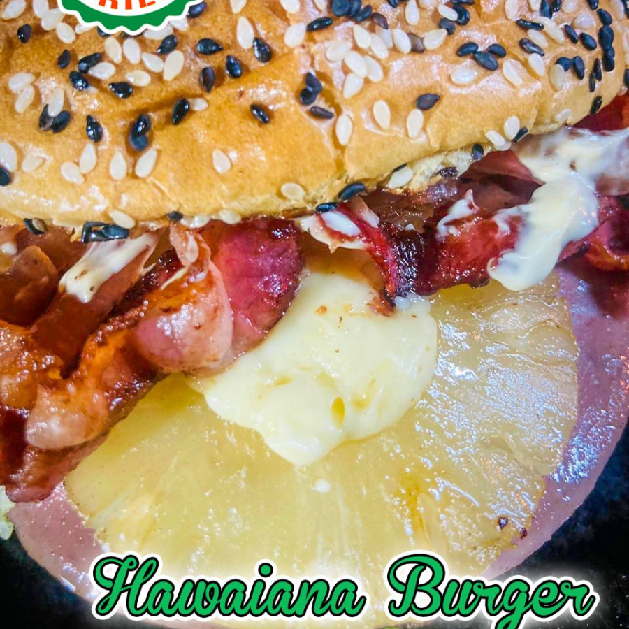 Pan, carne de arrachera, piña, tocino, jamon,queso asadero, cebolla morada caramelizada, guacamole, tomate, ensalada de lechugas y mayonesa.