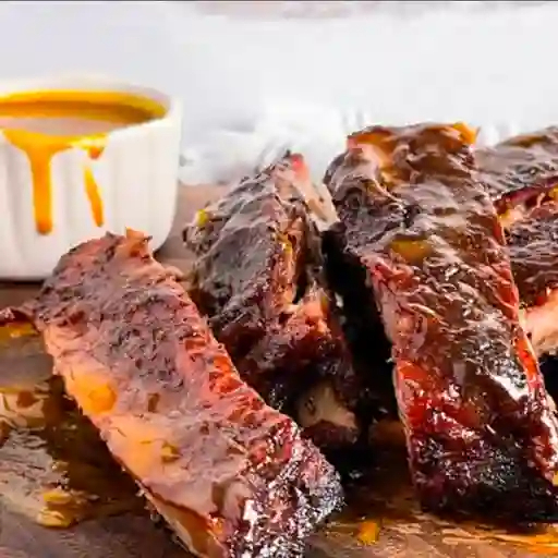 500 gramos de exquisitas costillas de cerdo St. Louis, ahumadas en leña de cerezo por más de 20 horas (¡tienes que probarlas!).