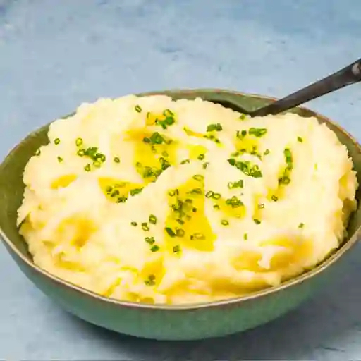 Exquisito puré de papa rústico, con un toque de queso Parmigiano Reggiano de 36 meses de curación, mantequilla y una pizca de ajo. Imprescindible en tus platillos.