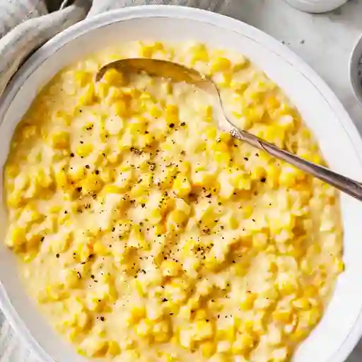 Exquisito elote dorado con mantequilla y una crema a base de buttermilk, con pimienta y toque de nuez moscada.