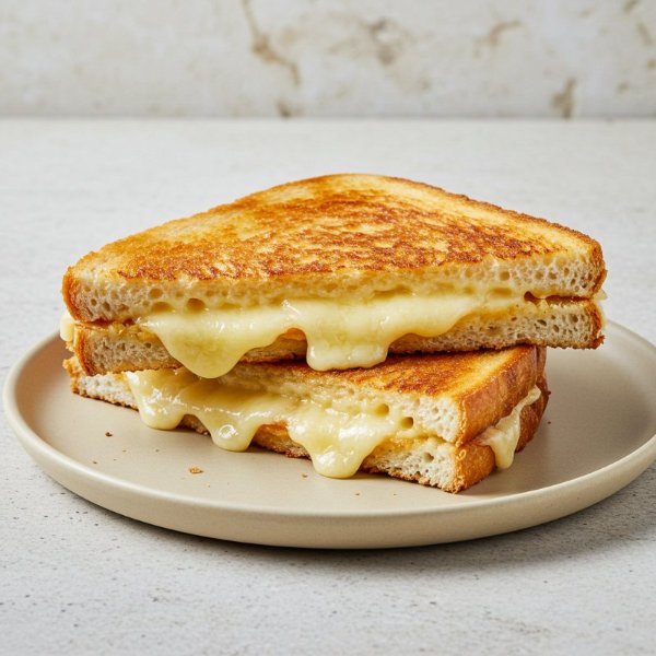 Sandwich de queso cheddar y mozzarella con costra de parmesano.