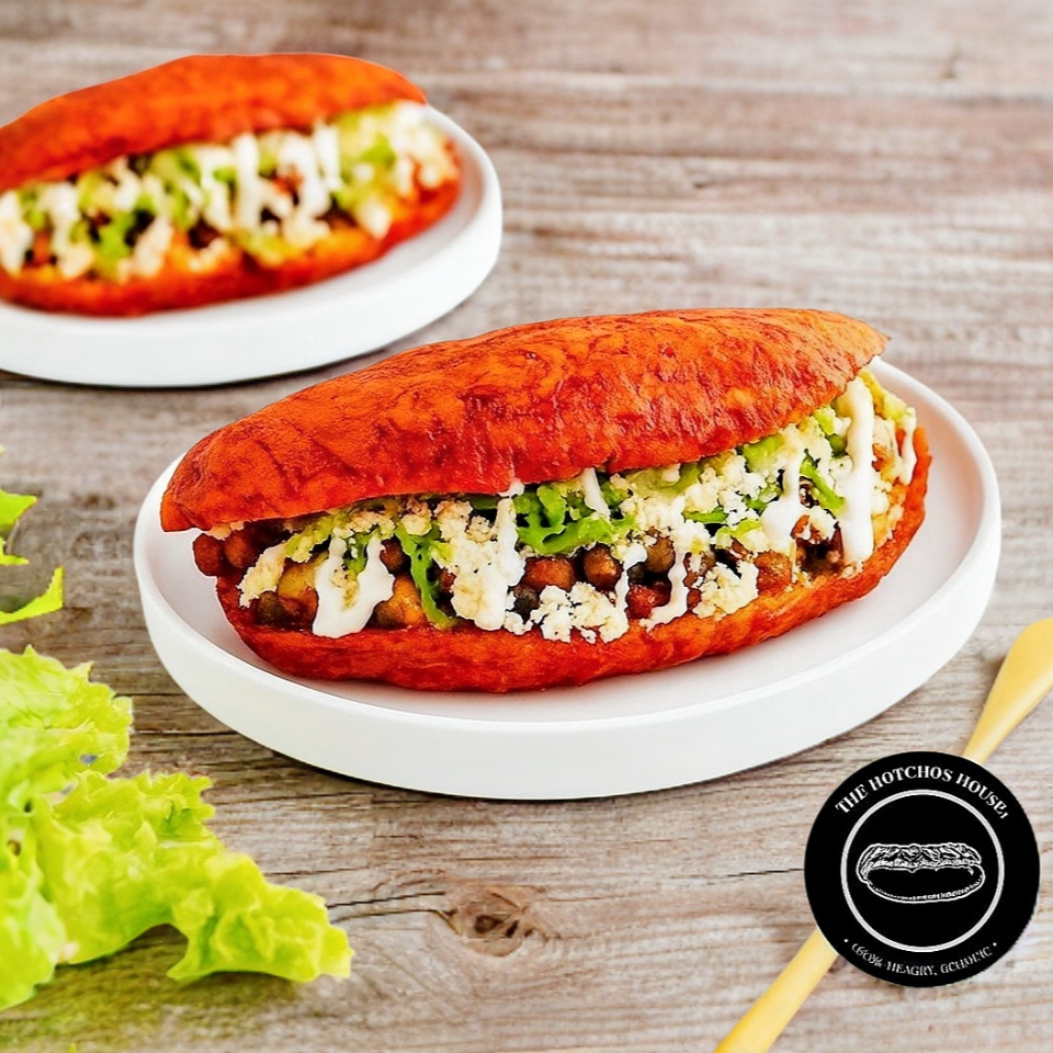 Delicioso Hot Dog de pavo tamaño jumbo de 20cm acompañado de papa dorada, cebolla caramelizada y chile toreado.