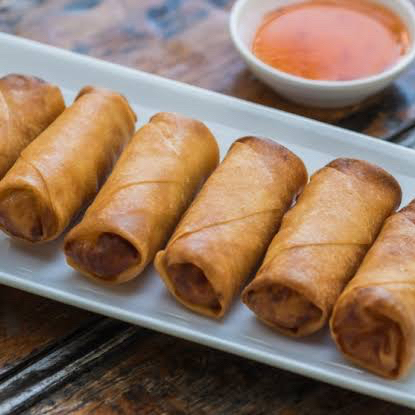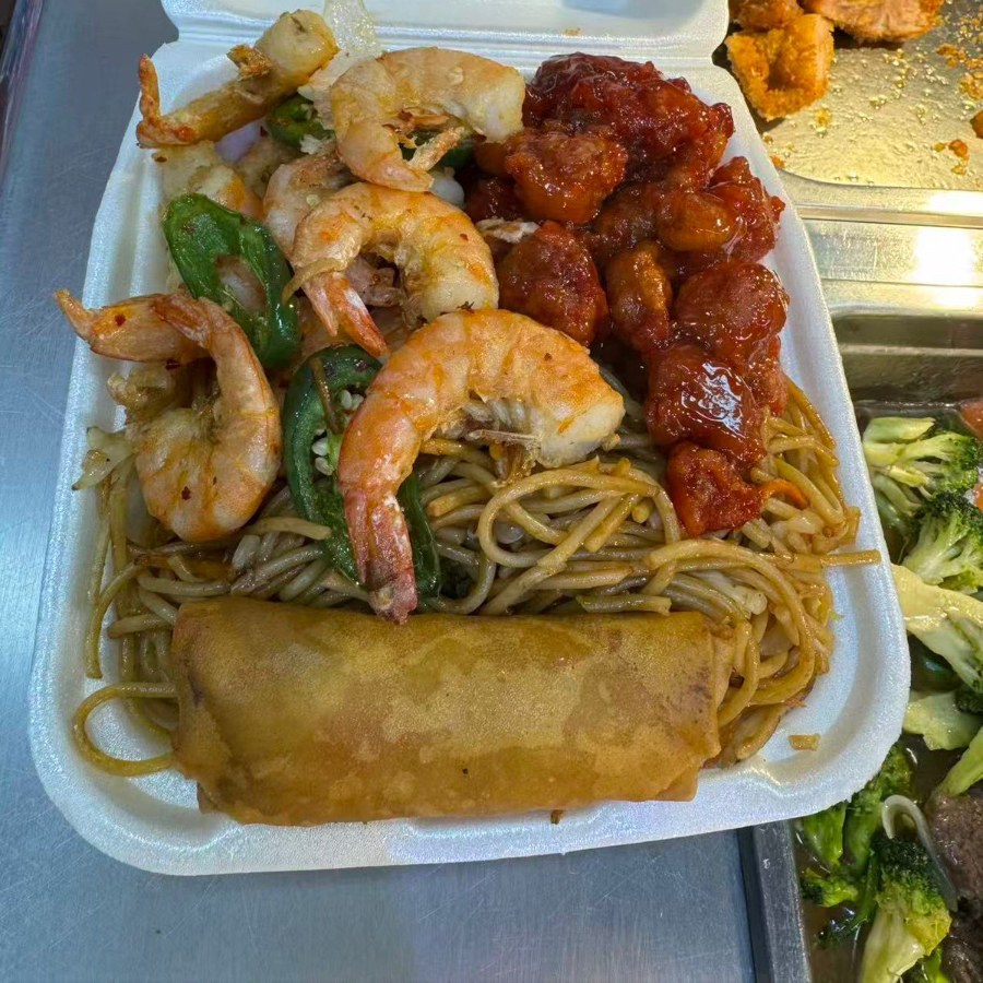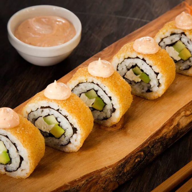 Lleno de trozo de camarón, trozo de pollo, queso, zanahoria y pepino.