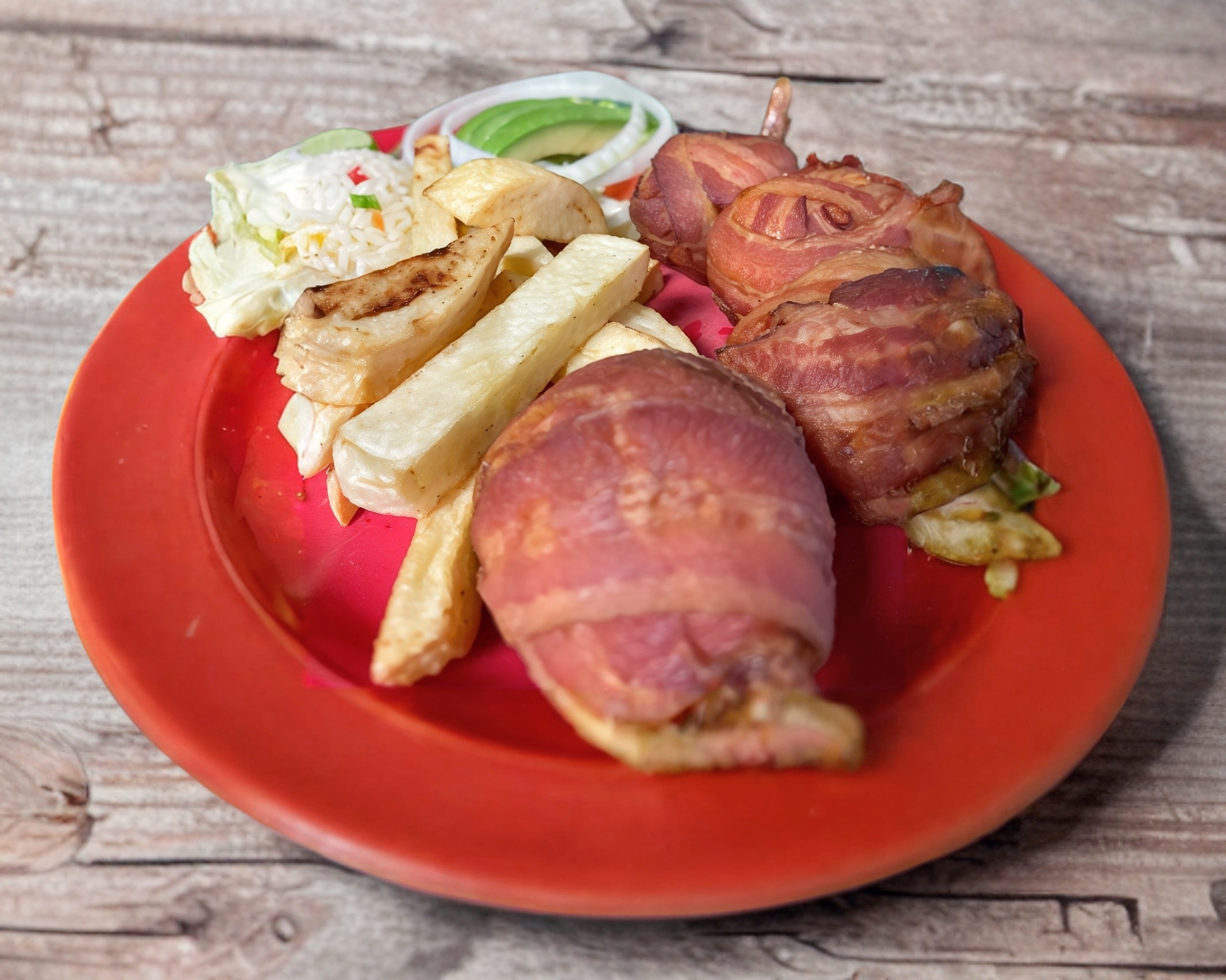 acompñada de Ensalada papas y arroz