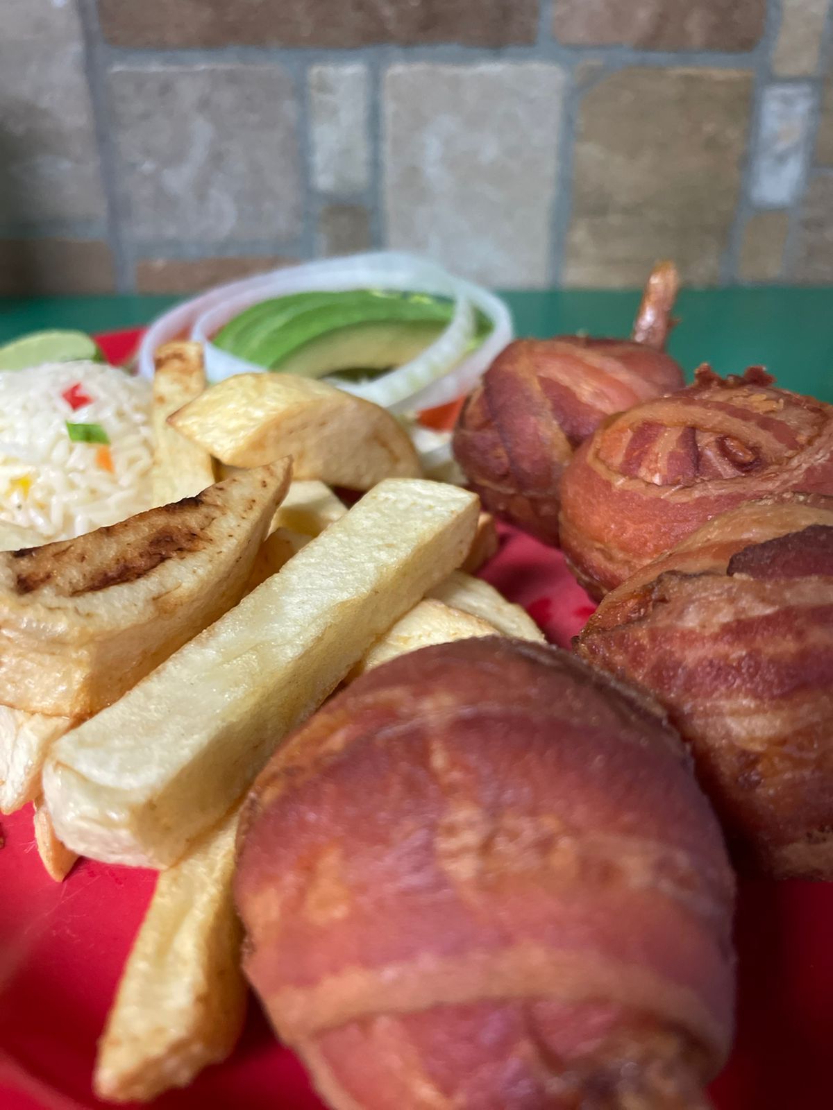 Servido en molcajete con guacamole