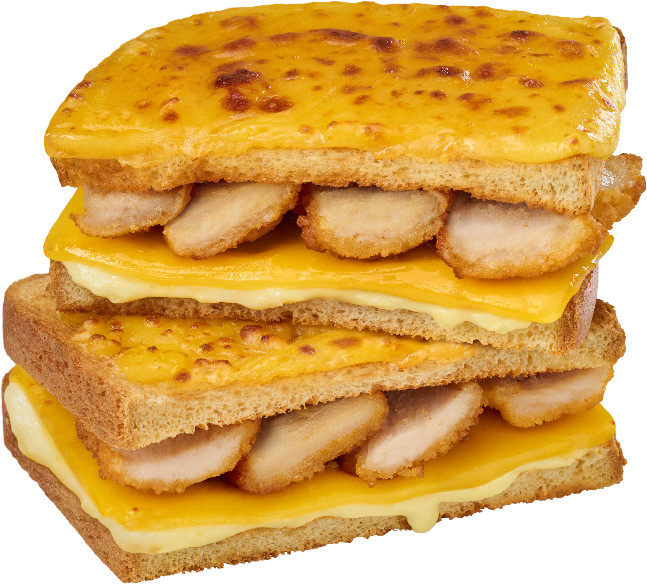 ¡Alerta de nuevo sándwich! Dos rebanadas de pan con una base cremosa de queso crema, un toque de jalapeño y queso americano, y adicionado de pollo crispy por dentro. Todo coronado con queso mozzarella gratinado en la parte superior. Crujiente, cremoso y con el picor perfecto: un melt que no pasa desapercibido.