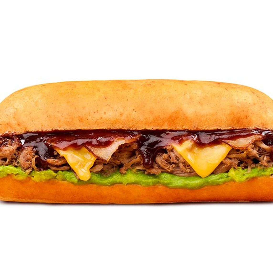 Sandwich elaborado con jugosa carne de res con nuestra icónica salsa BBQ, asentada sobre una base de guacamole, coronada con queso americano gratinado y rebanadas de tocino ahumado.