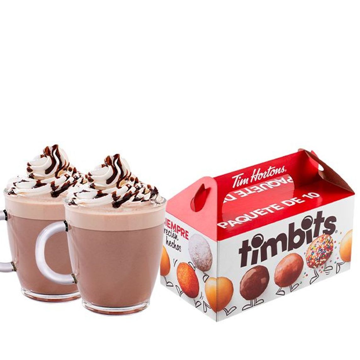 Dulce, suave y cremosa bebida caliente a base de agua y Chocolate Original Tim Hortons, con un topping de crema batida y salsa de chocolate para derretir tu antojo en cada sorbo.