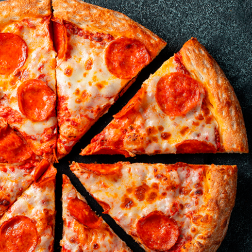 (Grande) Pizza con masa 100% natural (sin conservadores), con salsa 100% de tomate, pepperoni, queso 100% mozzarella y orilla rellena de queso mozzarella (14 pulgadas).