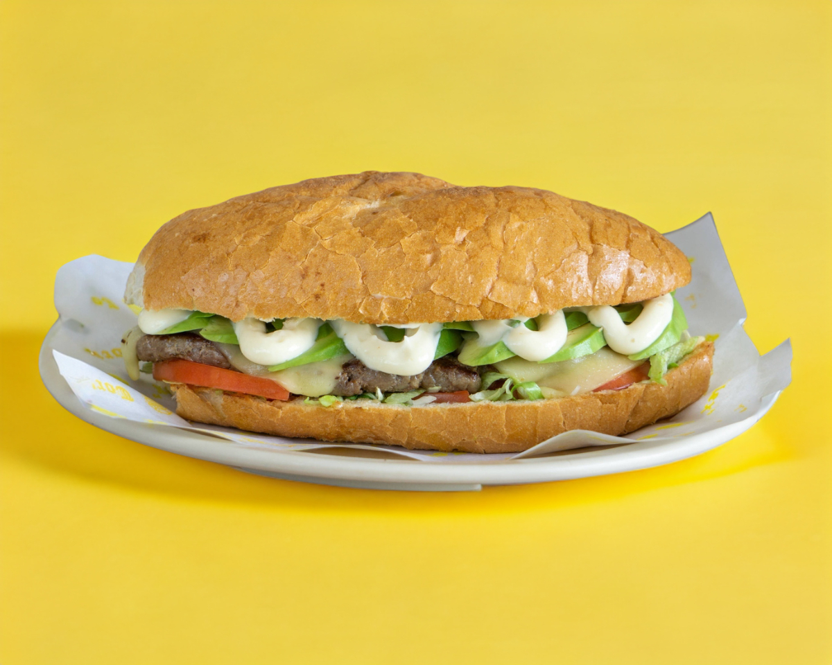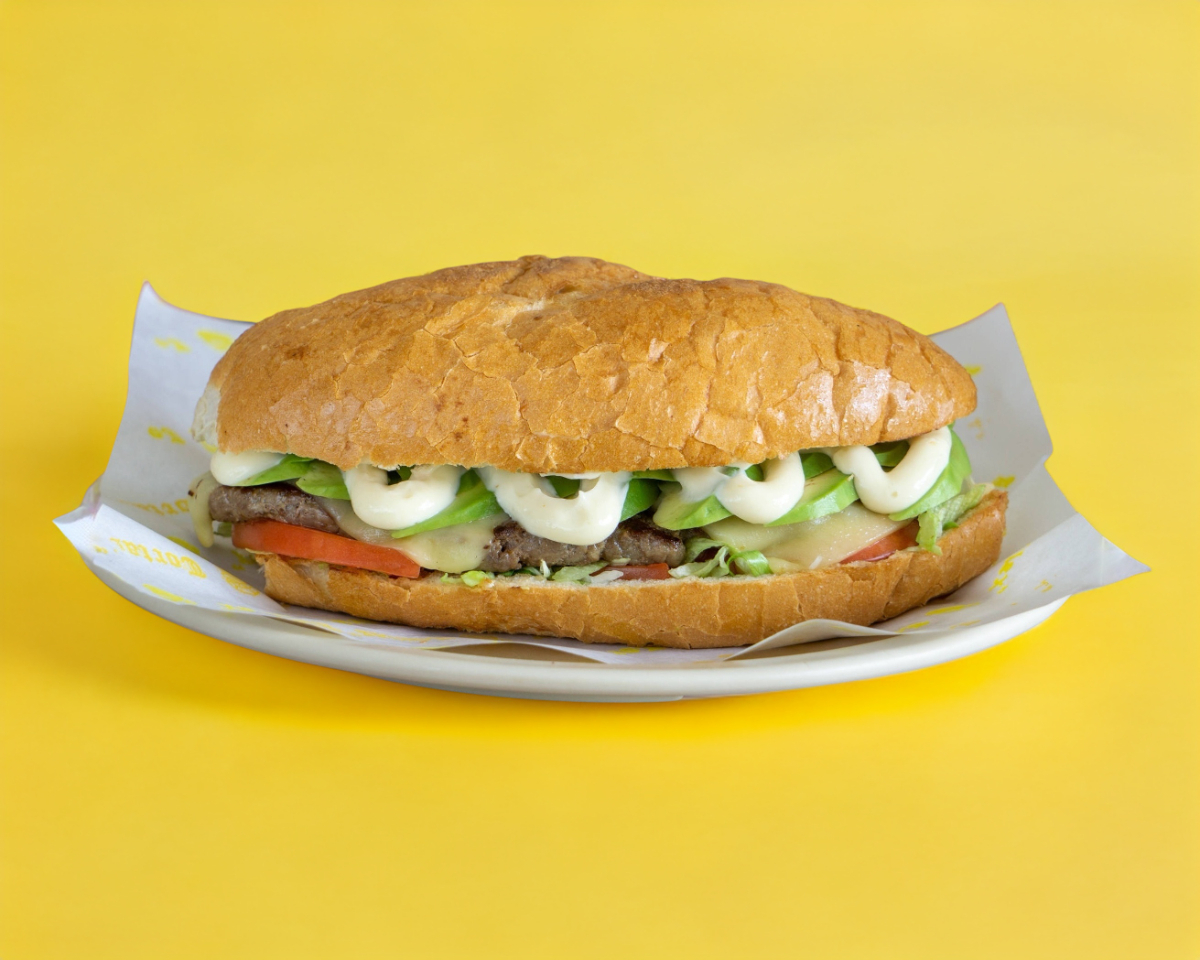 Carne de arrachera con el sazón tradicional de la casa, queso manchego, aguacate, jitomate, lechuga y mayonesa.