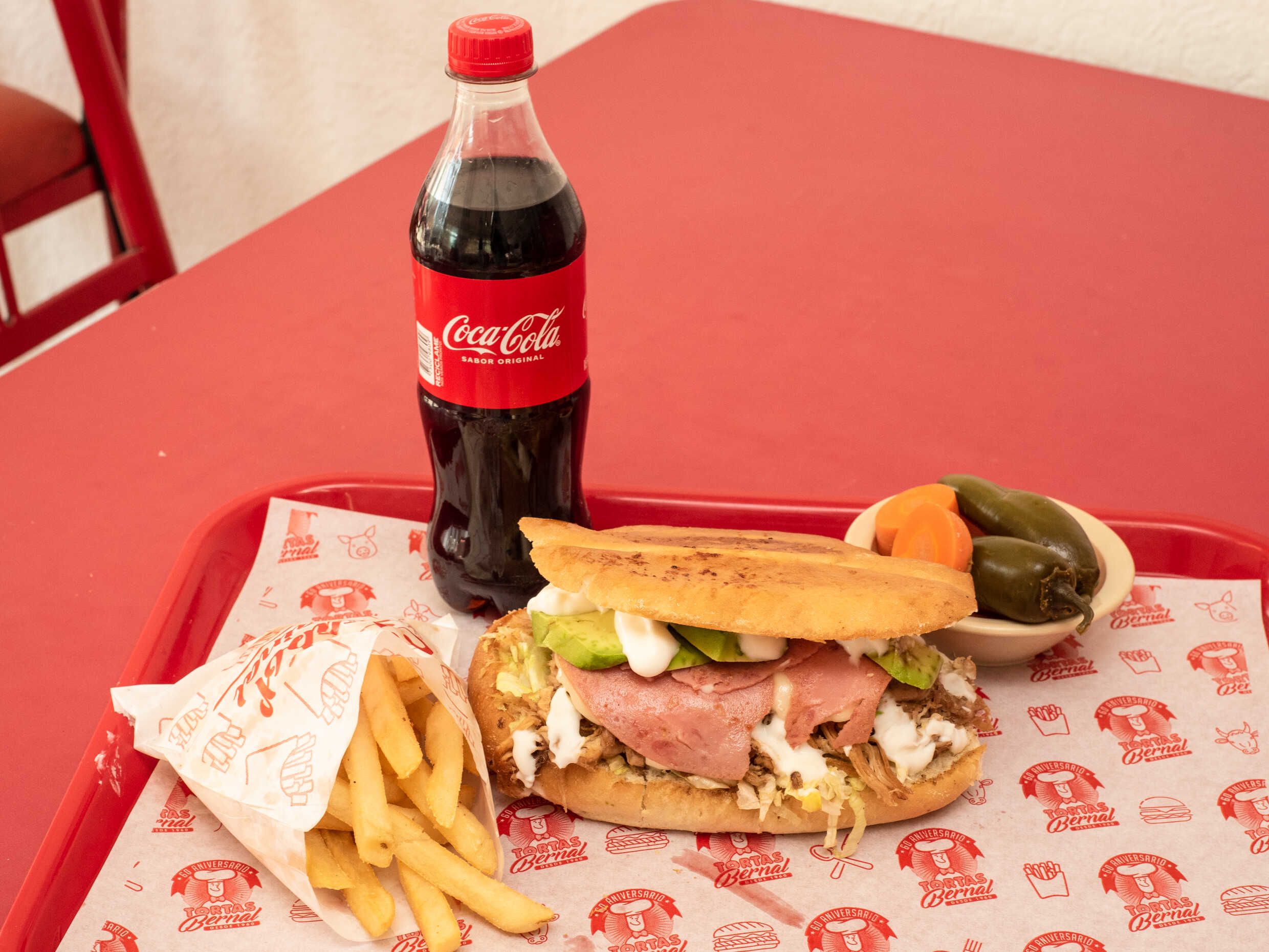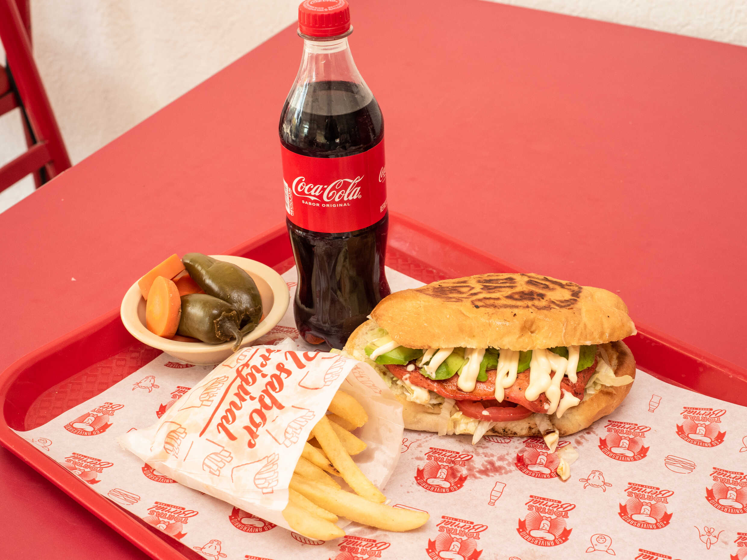 Torta de Arrachera*1 + Orden de Papas a la Francesa*1 + COCA COLA*1