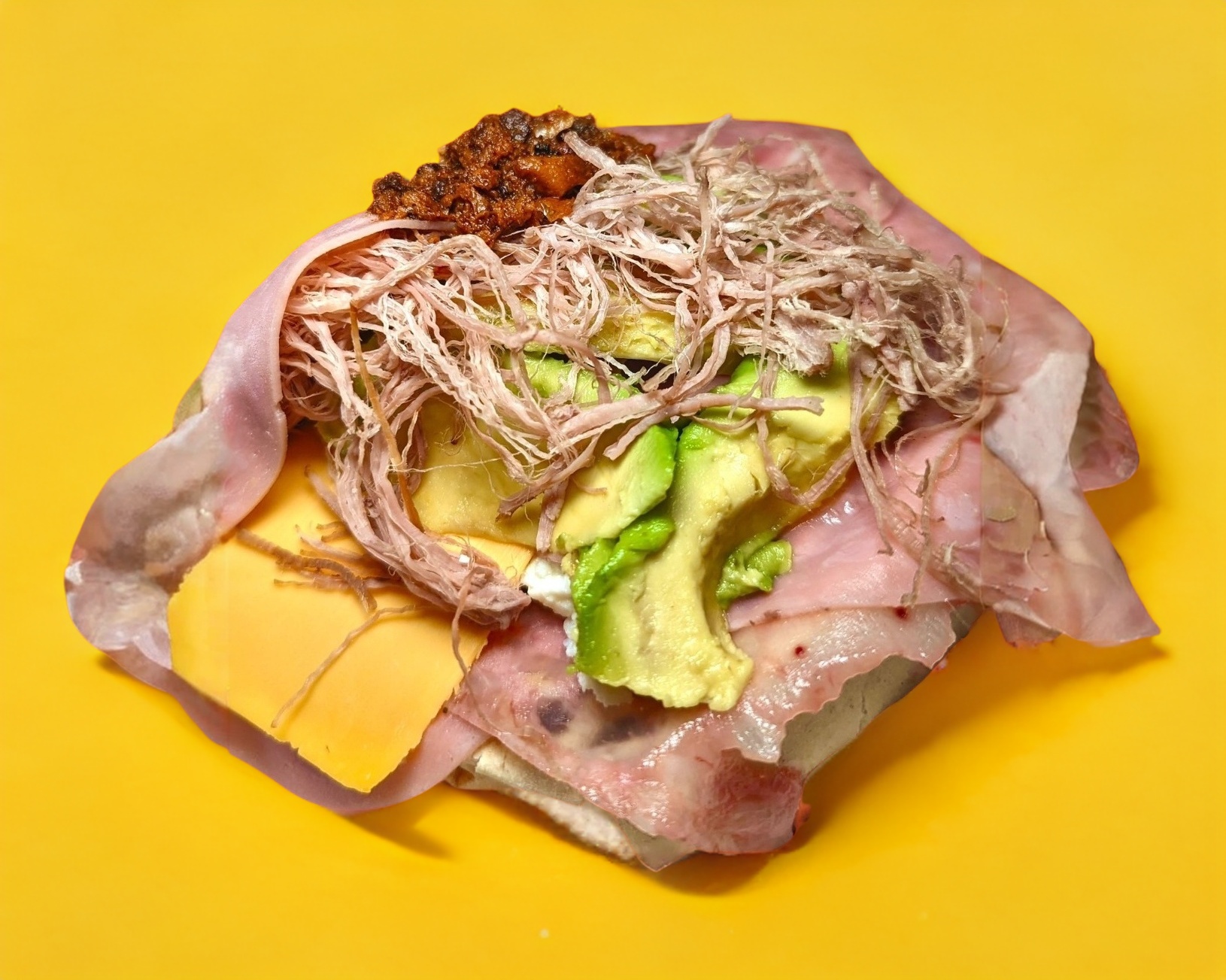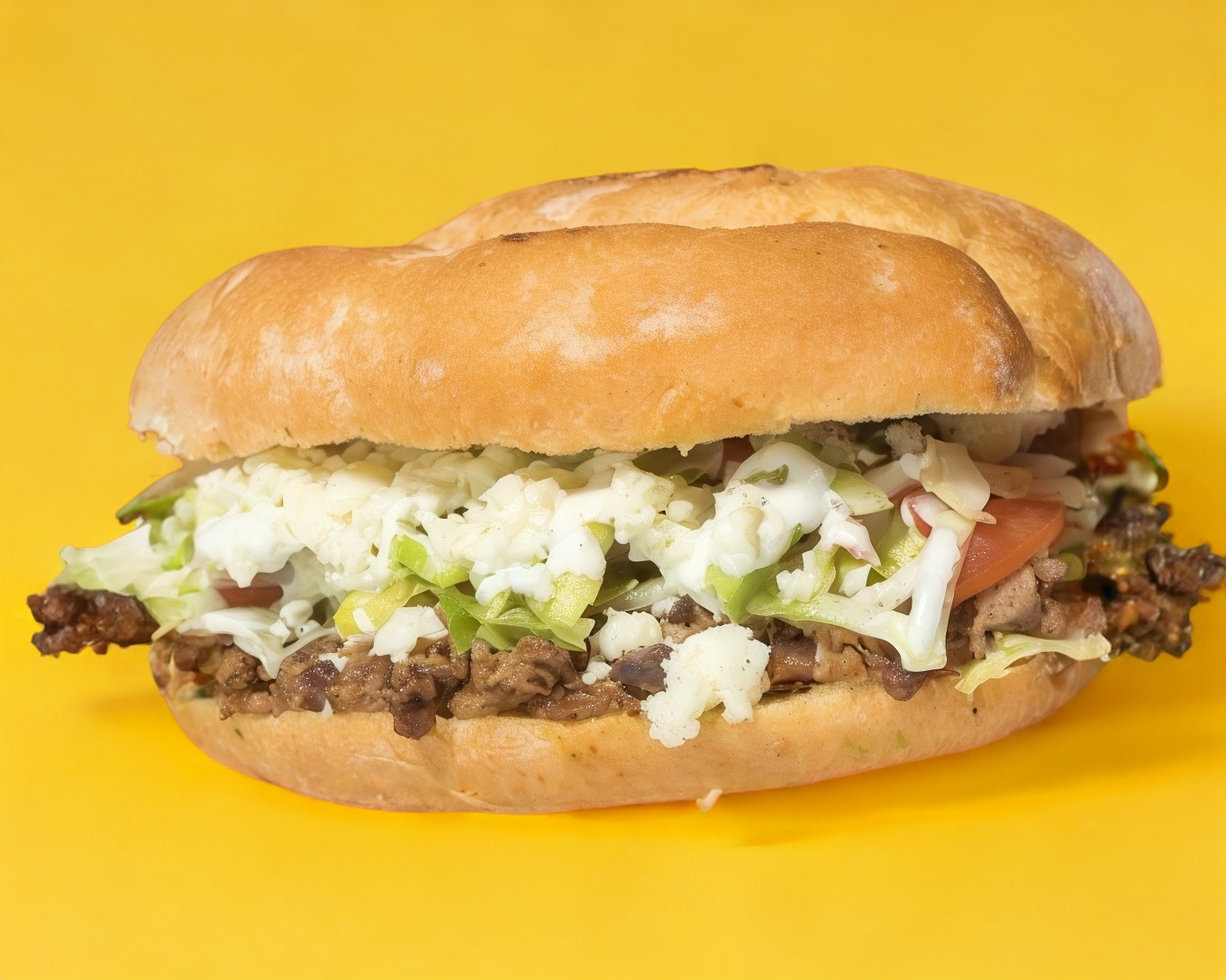 Carne de res deshebrada, aderezo casero, lechuga, tomate, cebolla, aguacate y crema ácida.