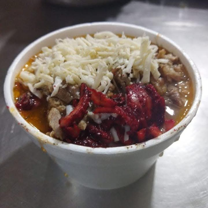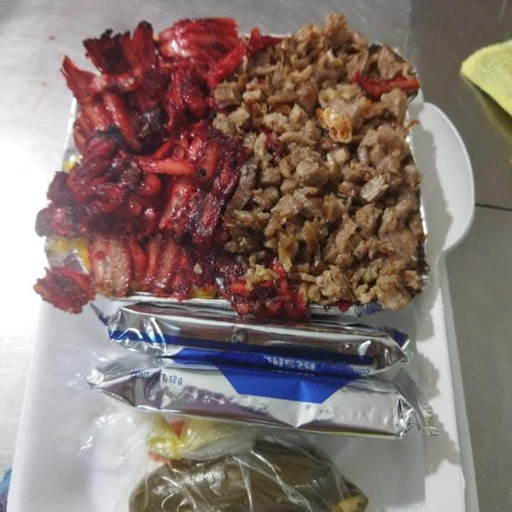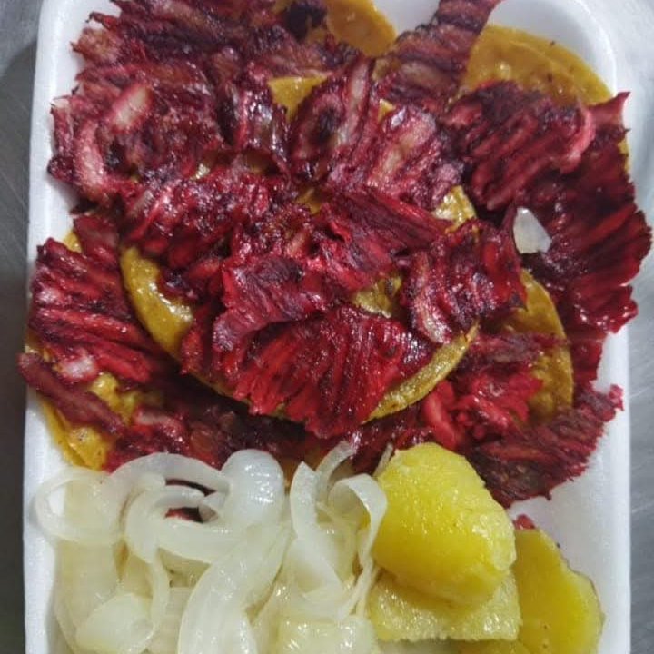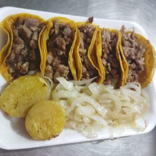 5 ricos taquitos de trompo y bistec de res, con queso en tortilla del #12