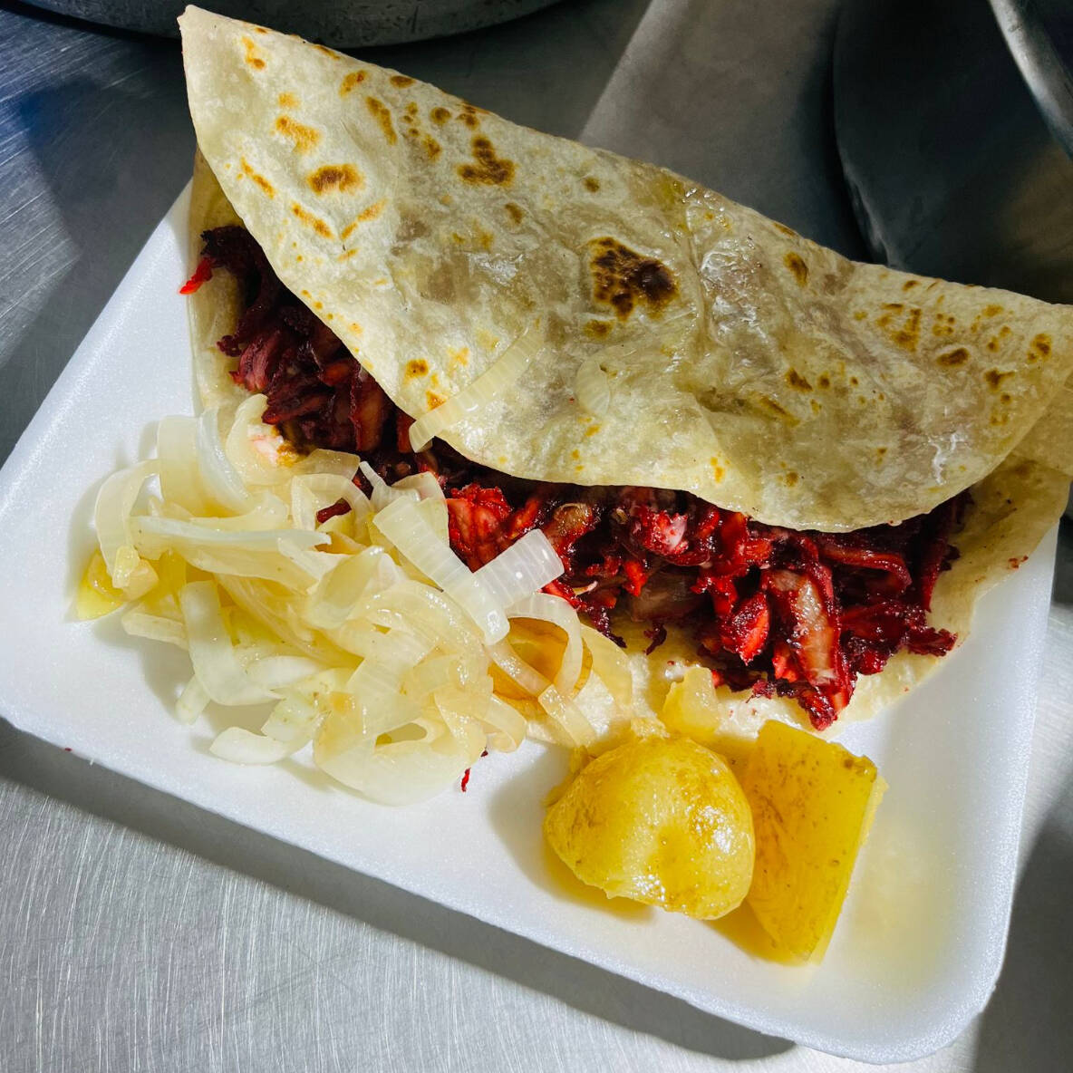 Sabroso pirata en tortilla de harina de 35cm rellena de res y queso