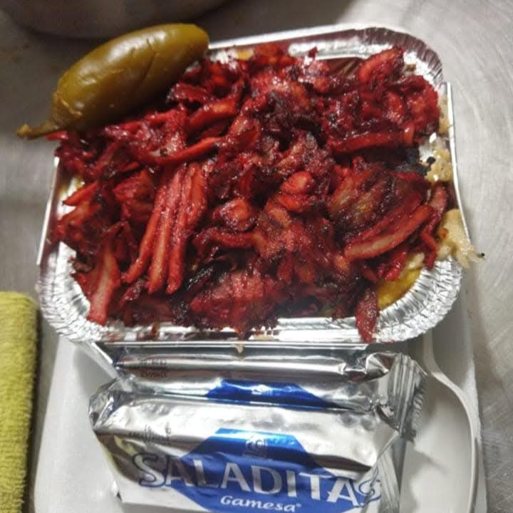 Rica campechana en tortilla d eharina de 22cm rellena con carne de trompo, res y queso