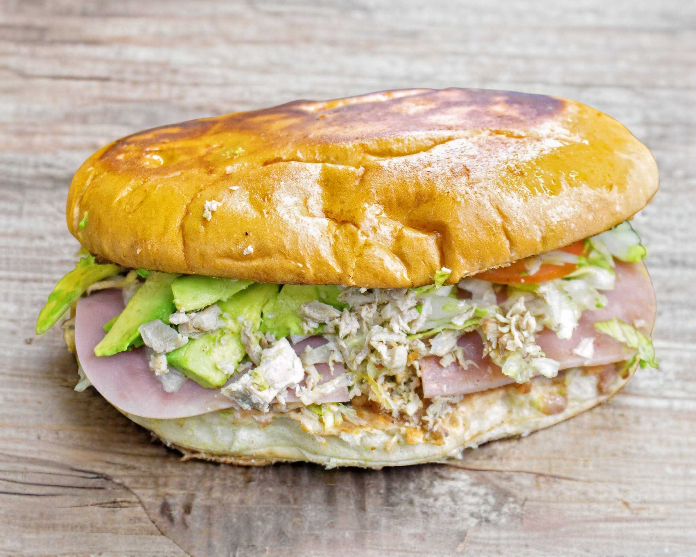 Mayonesa, jamón, lechuga, tomate, cebolla, jamon pimiento, queso de puerco, mortadela, queso panela, aguacate