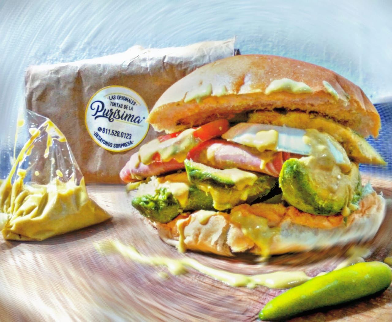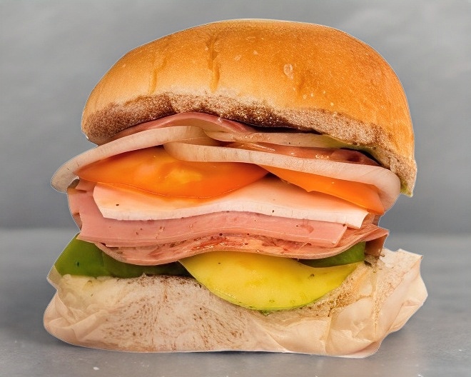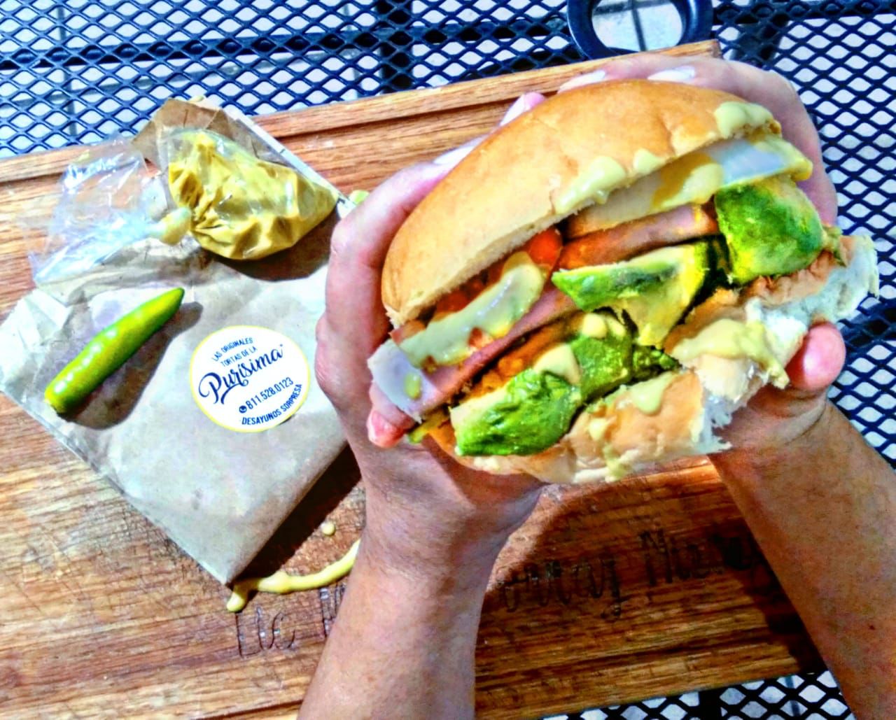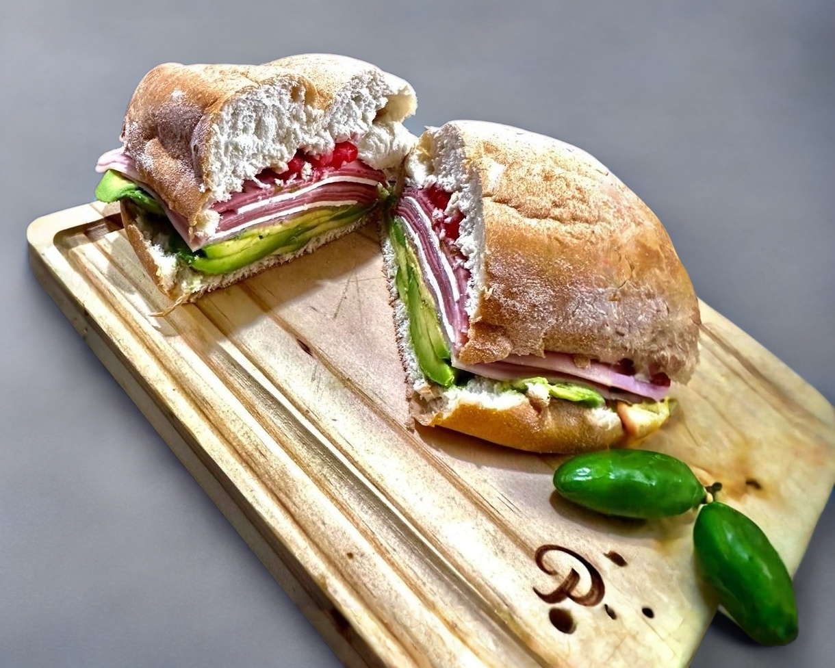Doble de carnes frías, exceso de aguacate, queso panela, pastel pimiento, cebolla y tomate. 10 carnes frias