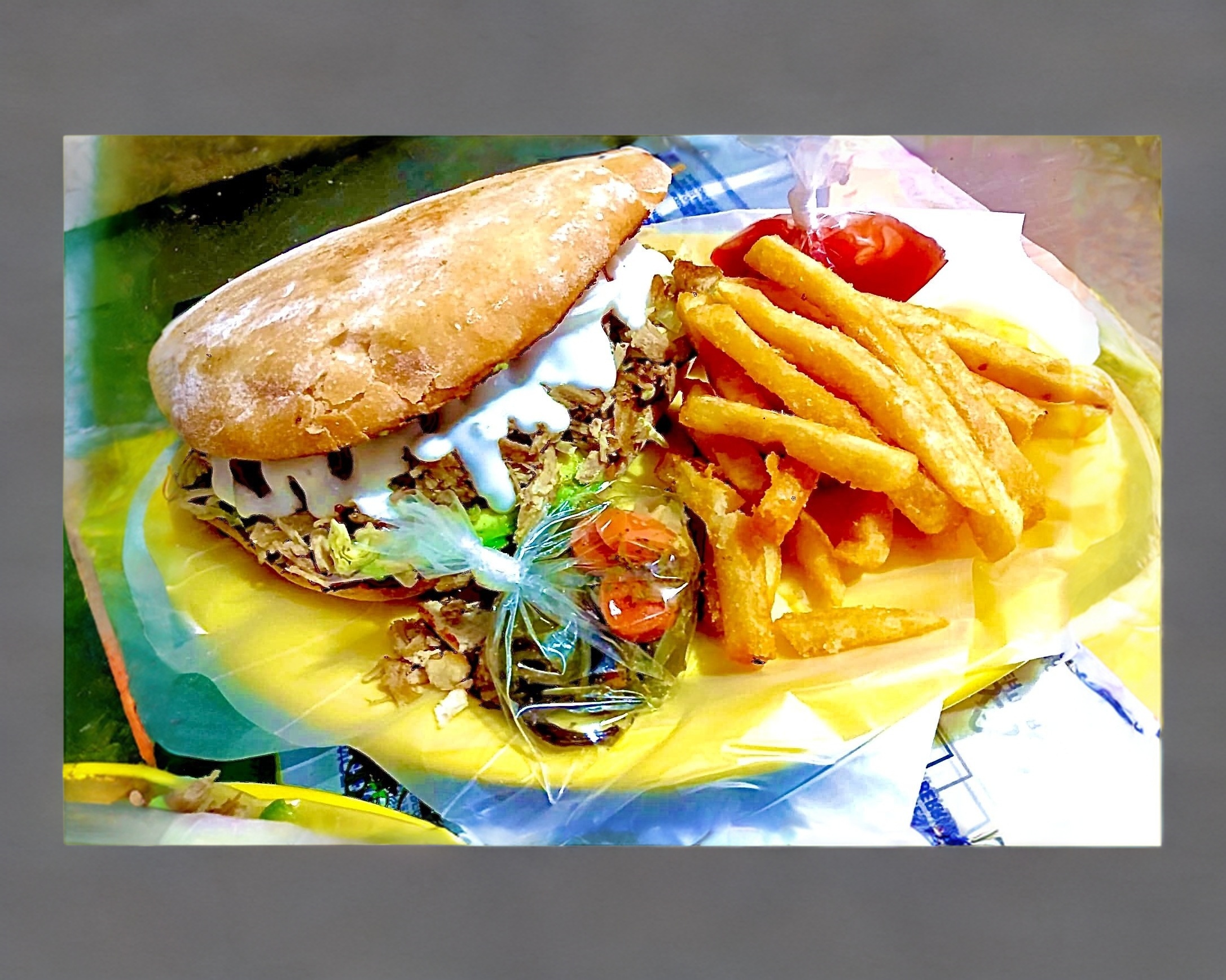 ORDEN DE PECHUGA DE POLLO BAÑADAS EN SALSA ACOMPAÑADA DE PAPAS A LA FRANCESA,ADEREZOS Y VERDURAS