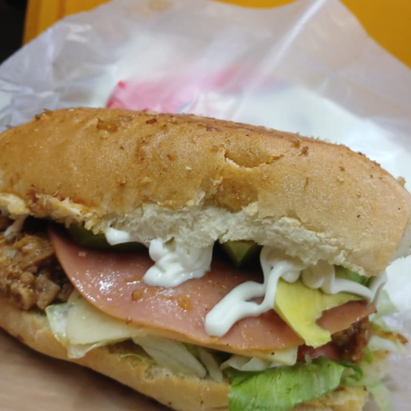 PAN TELERA LECHUGA TOMATE CARNE SAZONADA CON SALSA MORITA JAMON QUESO AGUACATE CREMA