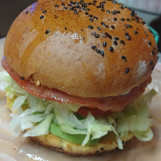 PAN TELERA, LECHUGA , TOMATE, MILANESA EMPANIZADA, AGUACATE, CREMA