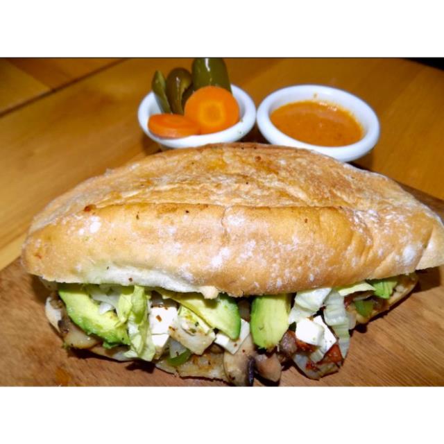 Torta de Queso Panela , Aguacate , Tomate , Lechuga , Cebolla , Champiñones y Pimiento