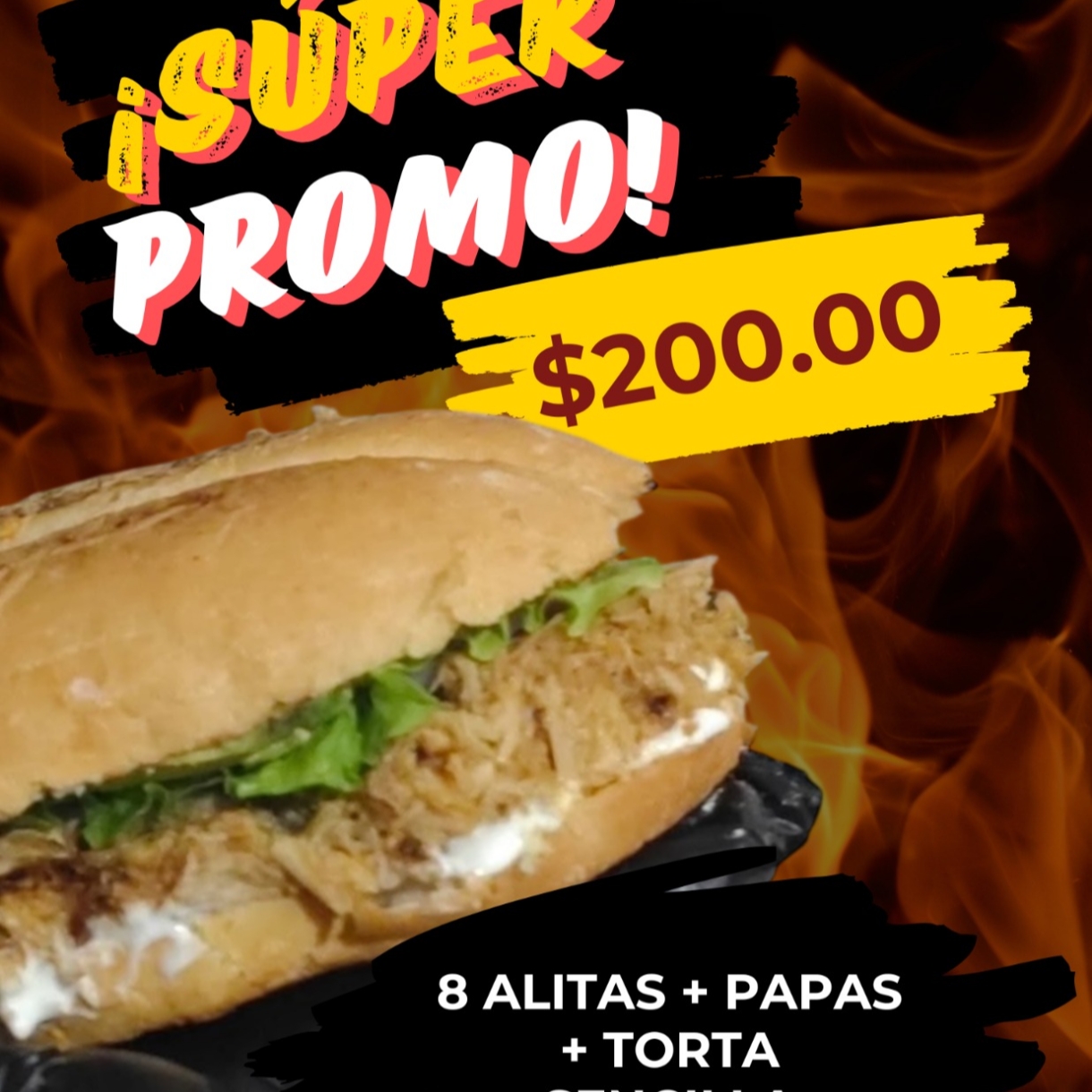 Torta La Básica*1 + Alitas Sencillas 8 Piezas*1 + Papas Sencillas*1