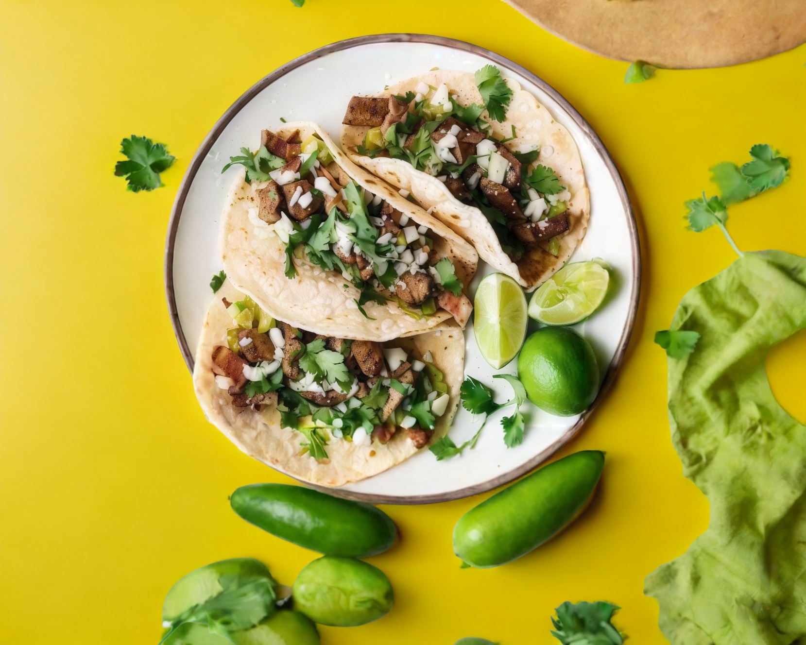 5 TACOS CARNE ASADA EN MAIZ CON SALSA VERDE.