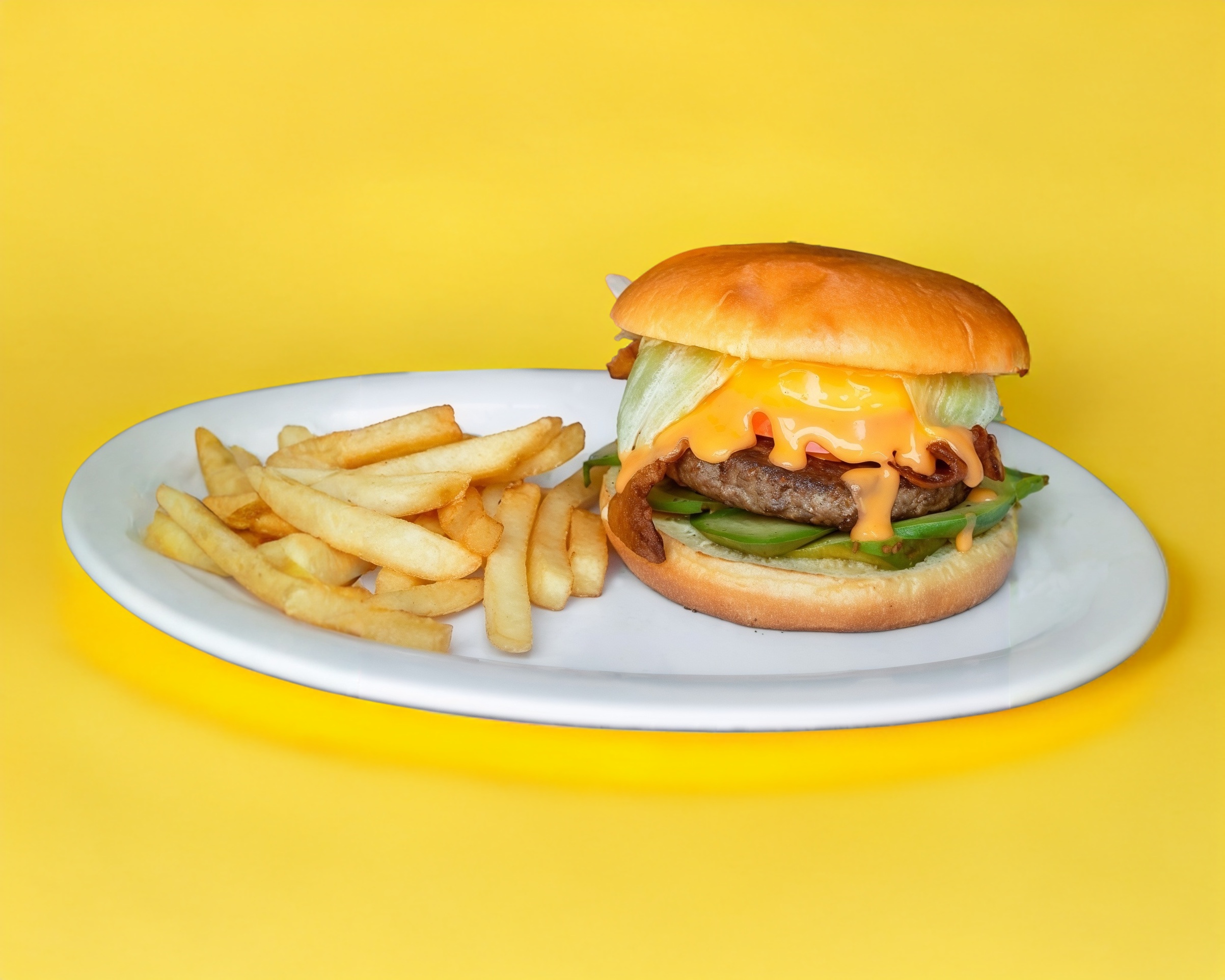 Carne 100% de res, aguacate, salami, queso derretido, lechuga, tomate y cebolla.