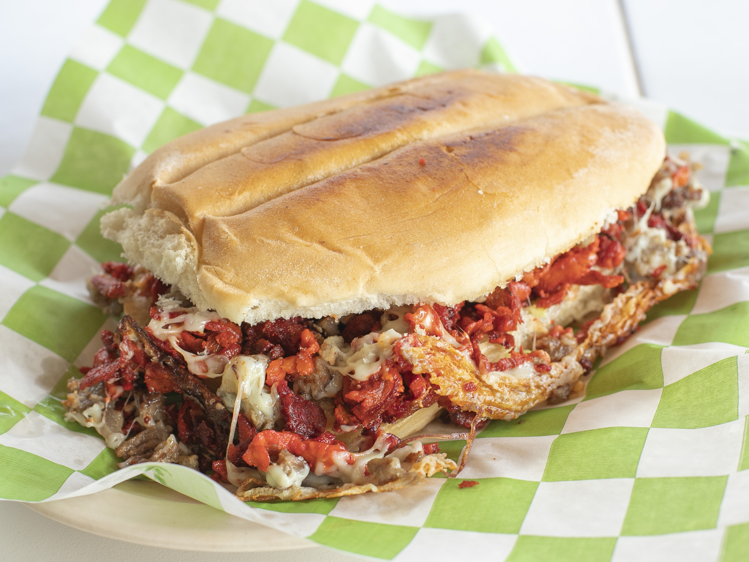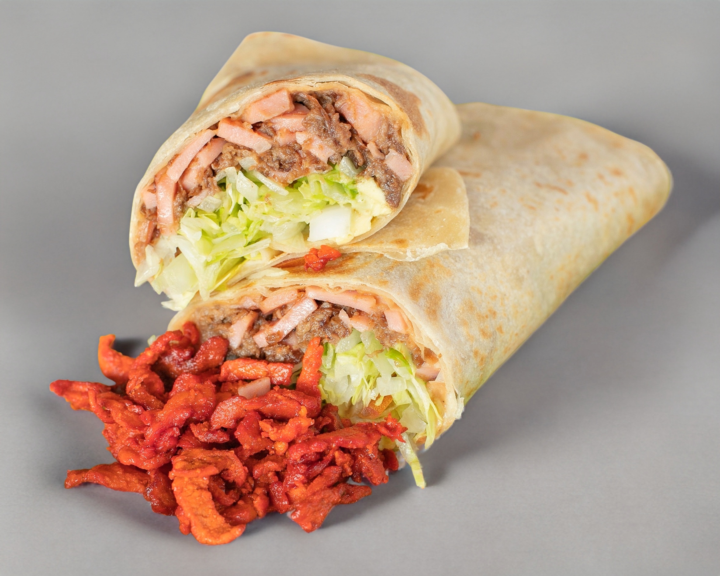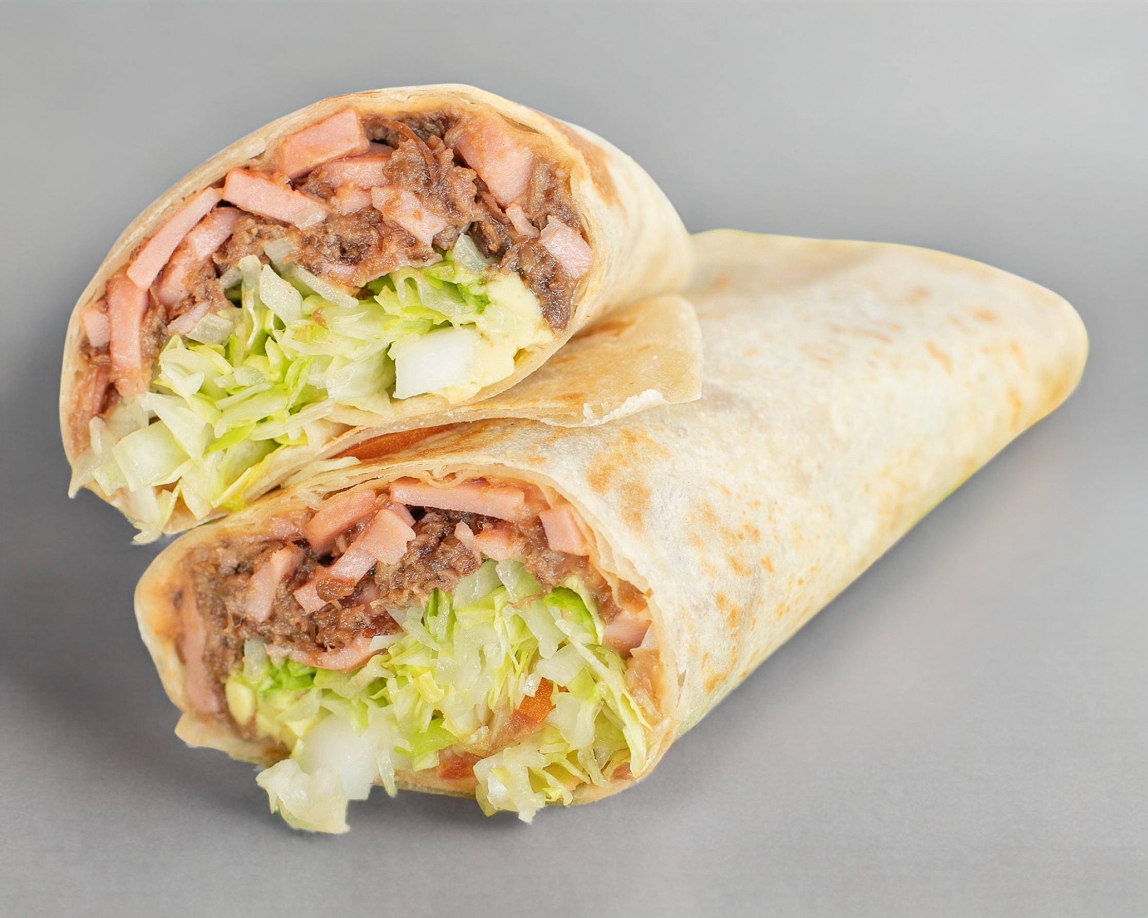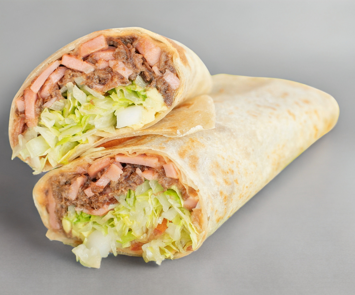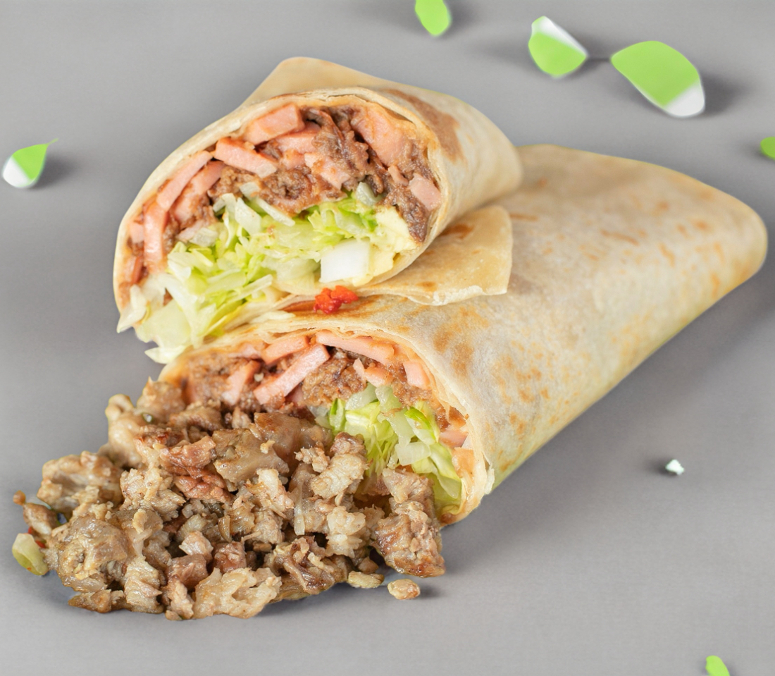 Borrito de desebrada de res salchicha de pavo lechuga jitomate cebolla aguacate + Pepsi