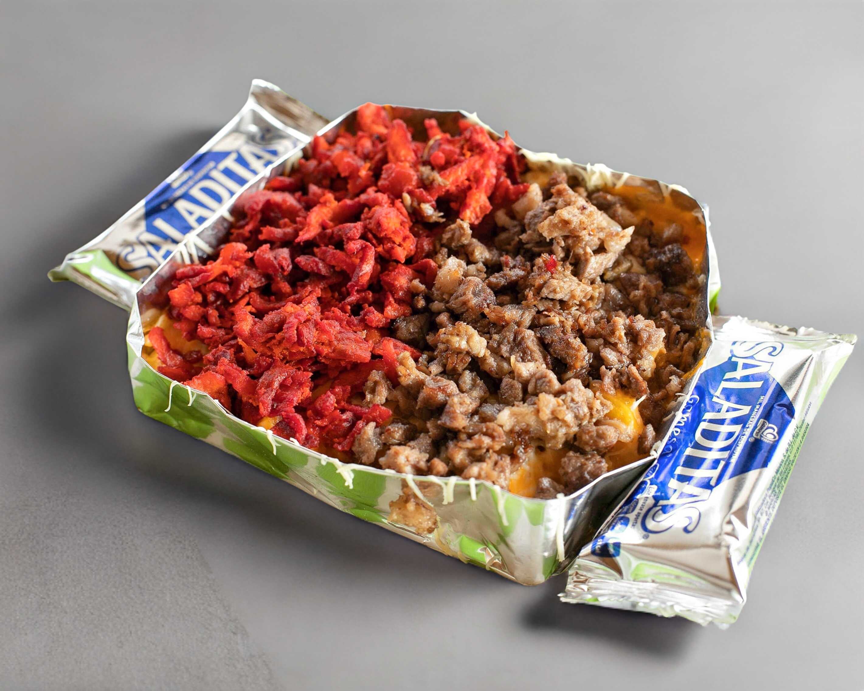 Bistec trompo queso chihuahua galletas saladitas 2 pasas mantequilla queso amarillo aderezo salsas