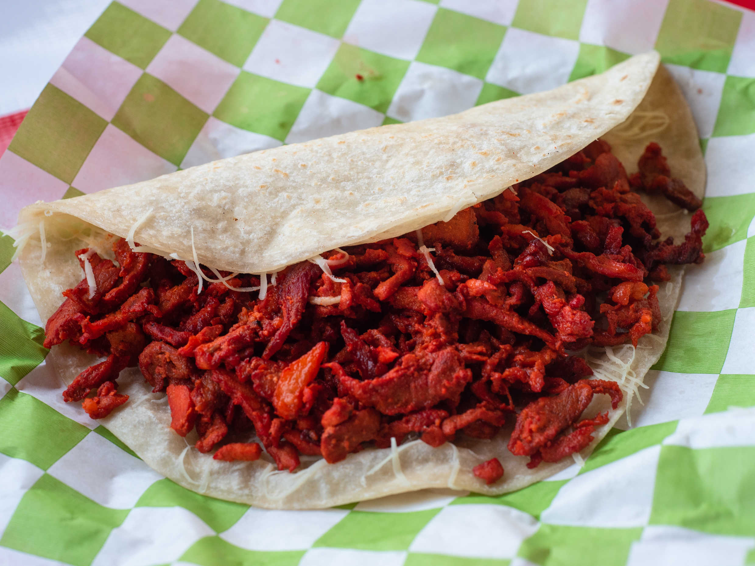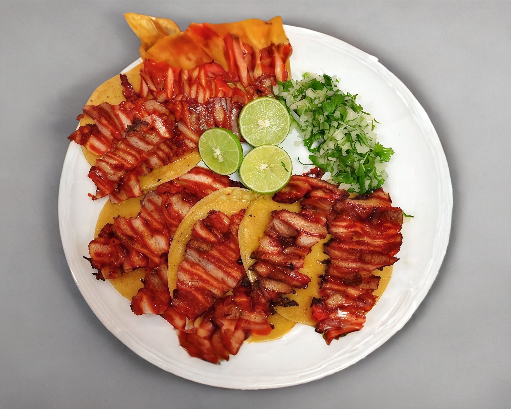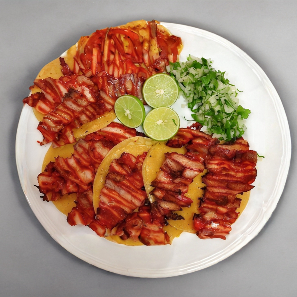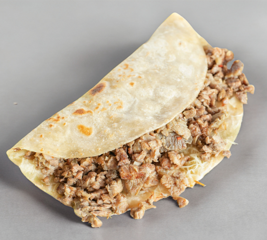 Tortilla de harina 😋 32 CM con Trompo queso chihuahua salsas pico de gallo limones