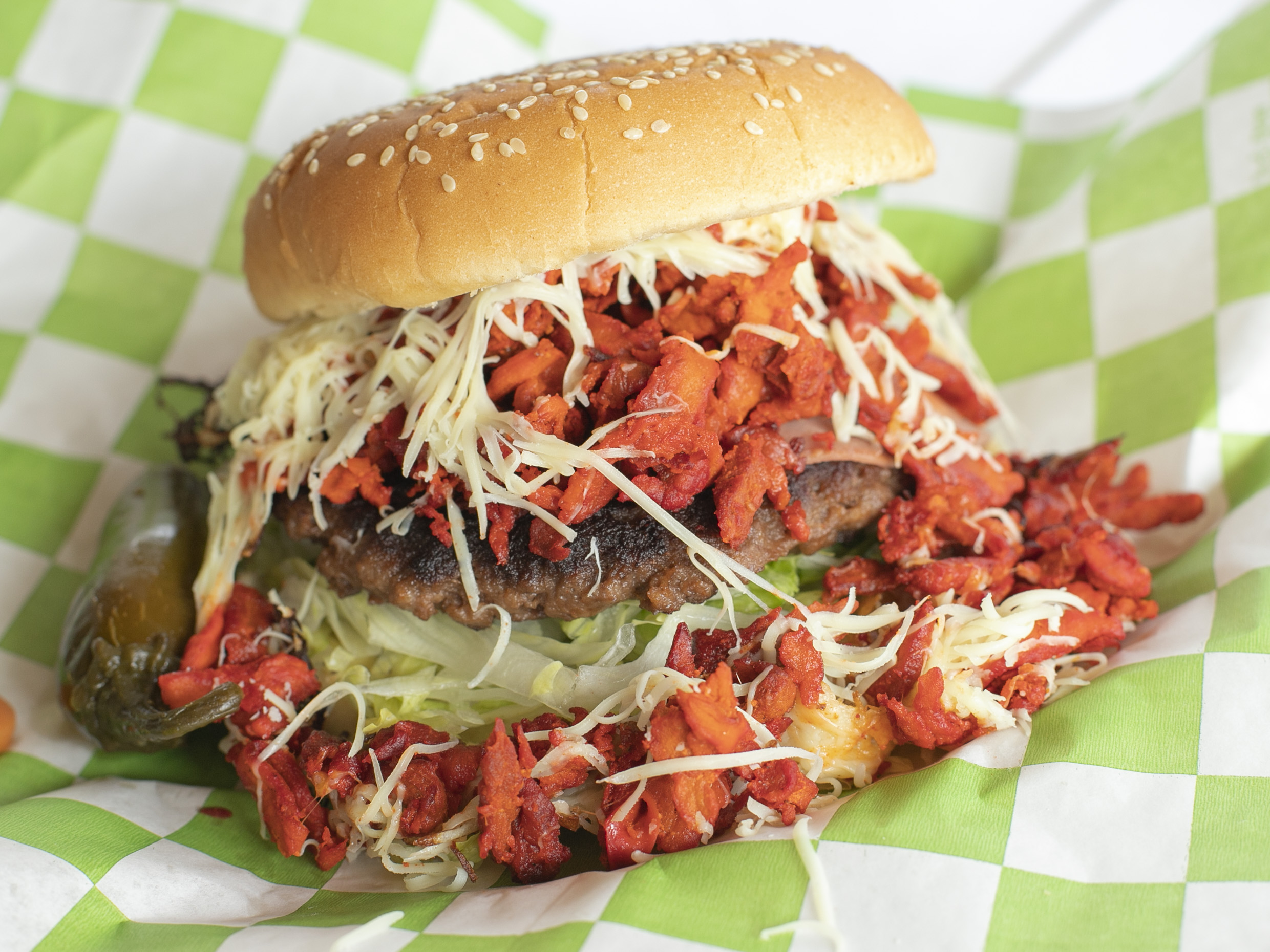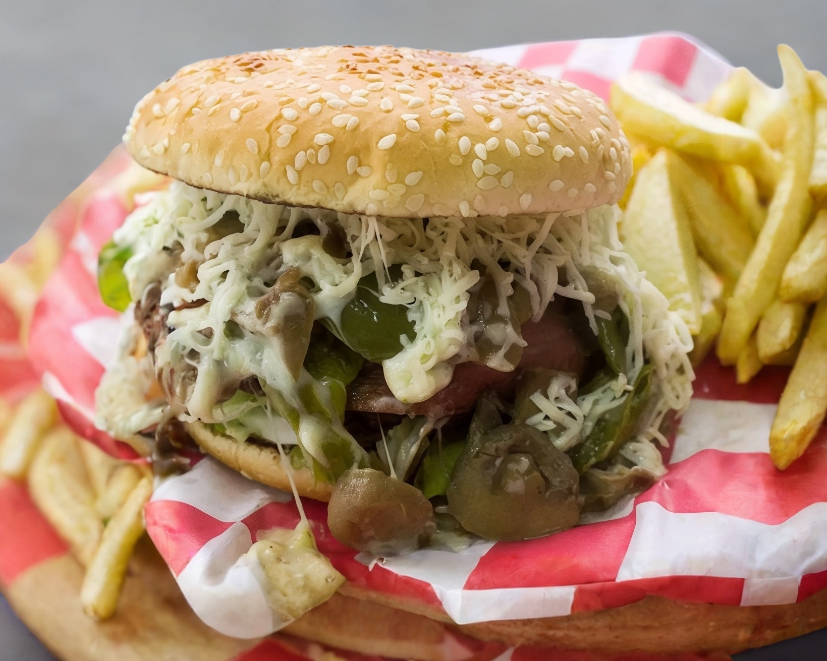 Carne dé res 120 gramos guiso de champiñones tosino morrón cebolla lechuga aguacate jitomate