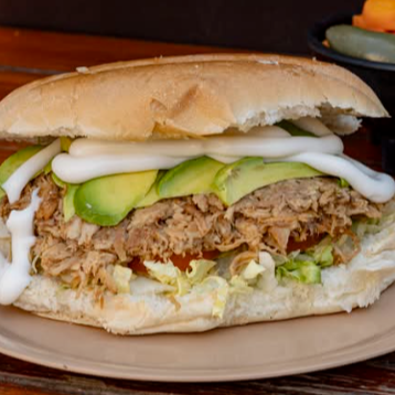 De pierna, jamón y queso con aguacate, lechuga, tomate y crema.