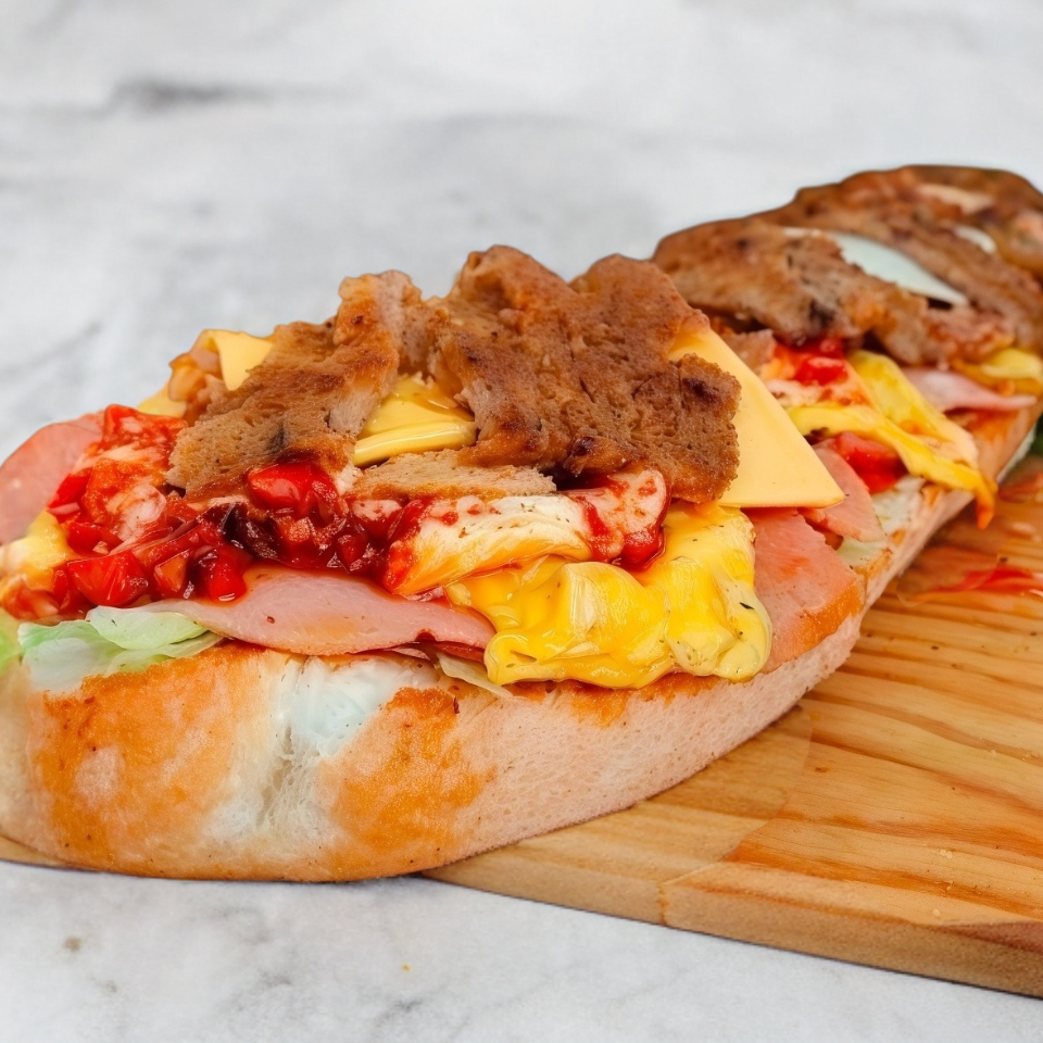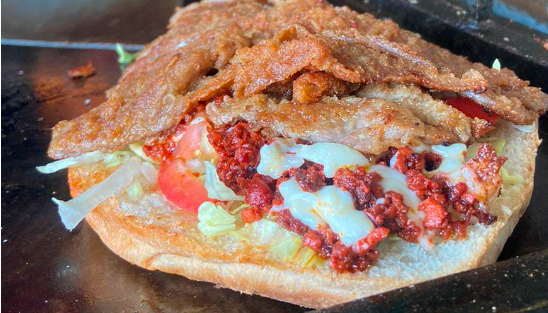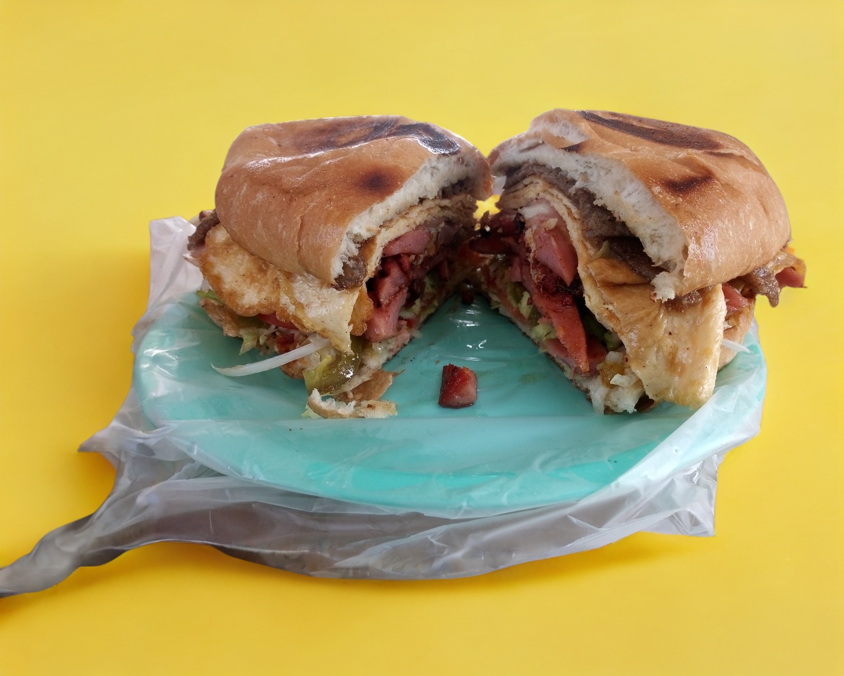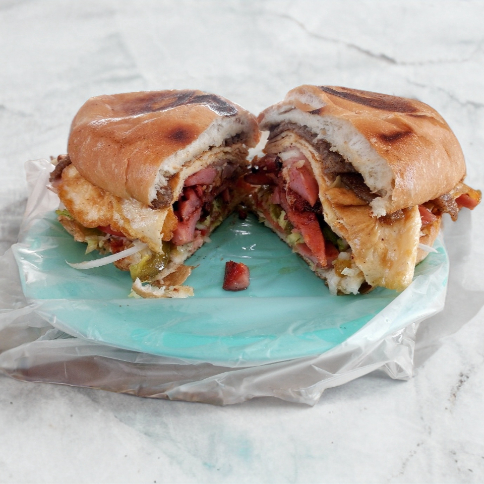 Milanesa, pierna, huevo, salchicha, jamón, chorizo, queso amarillo, queso blanco y queso oaxaca.