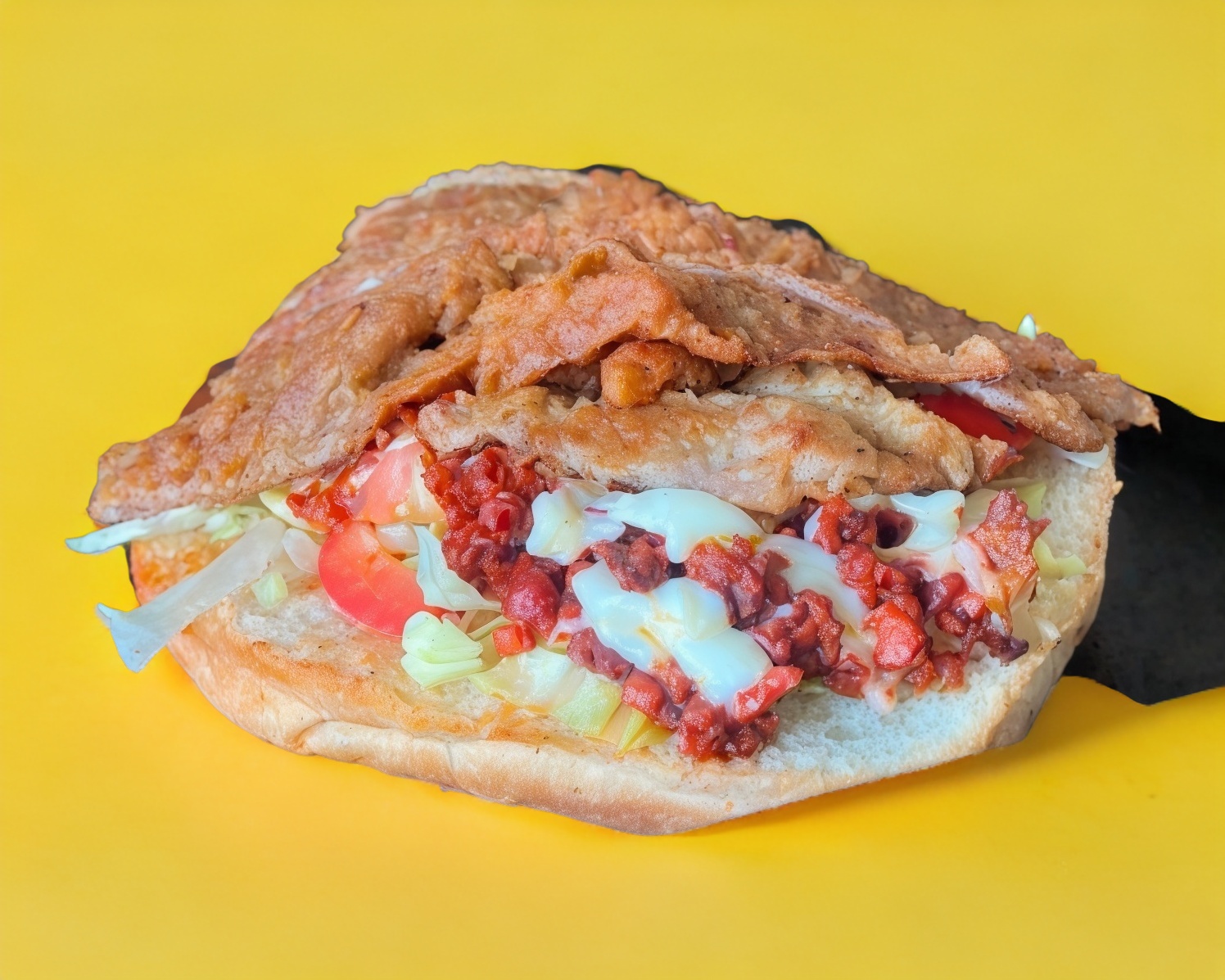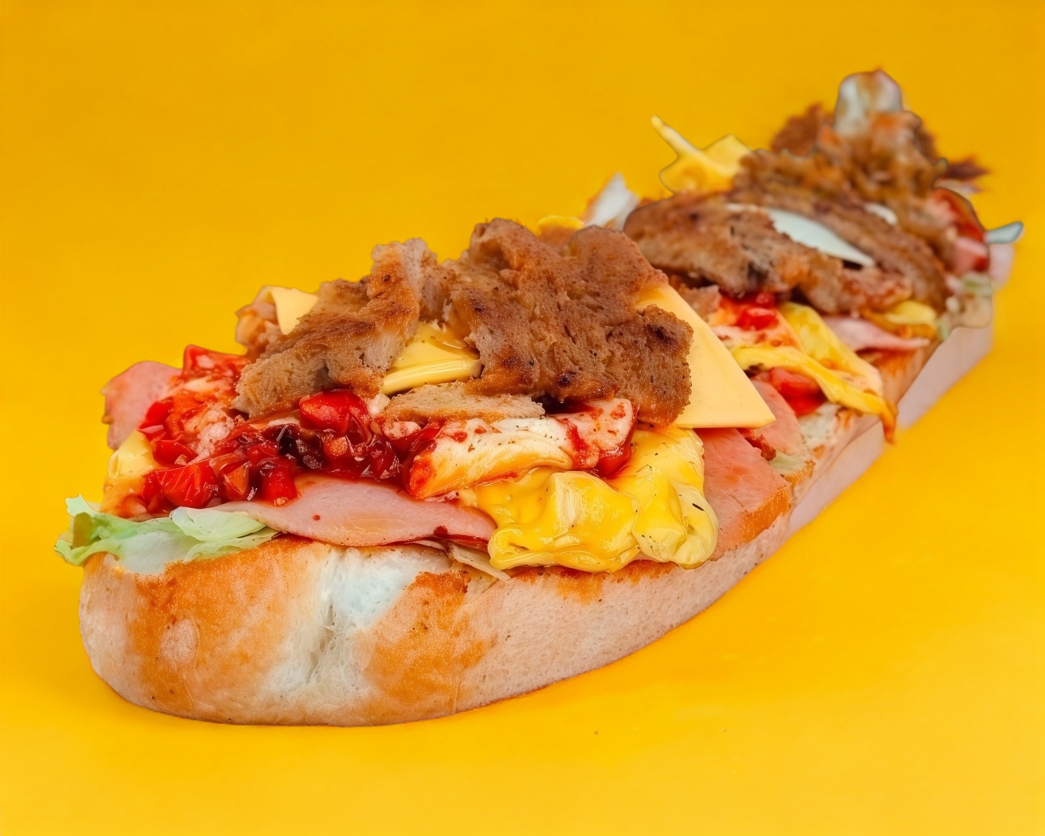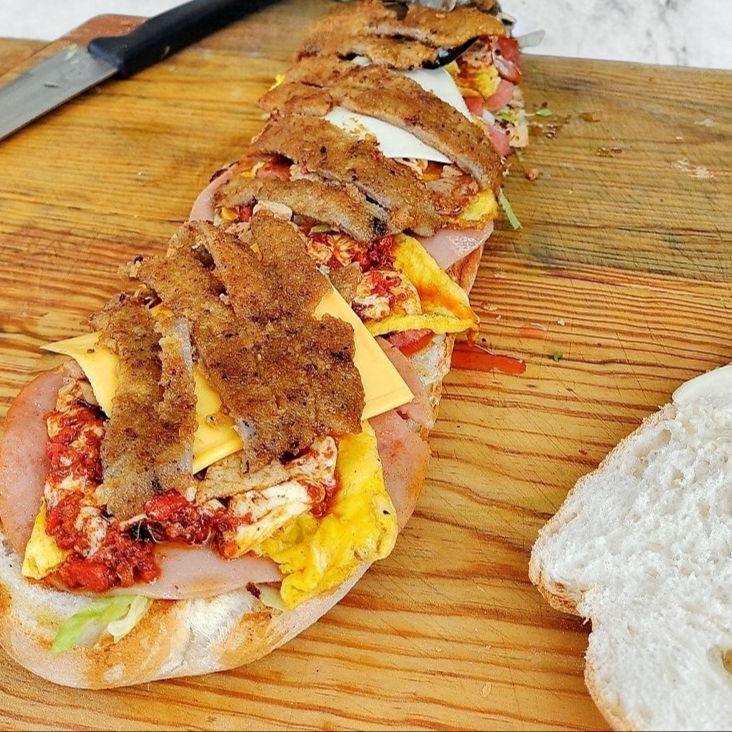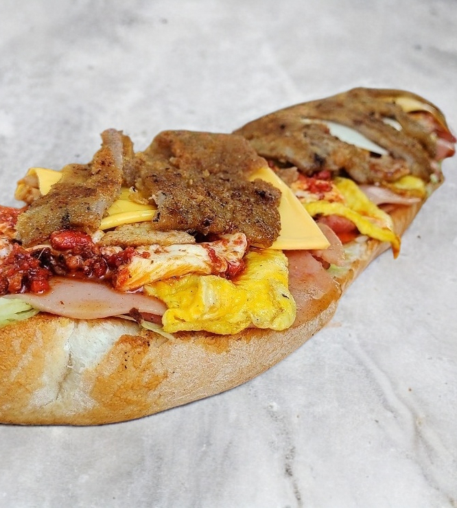 Milanesa, pierna, huevo, salchicha, jamón, chorizo, queso amarillo, queso blanco y queso oaxaca.