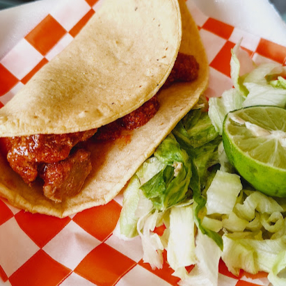 TAQUITO DE GUISO, ASADO ROJO EN TORTILLA DE MAIZ