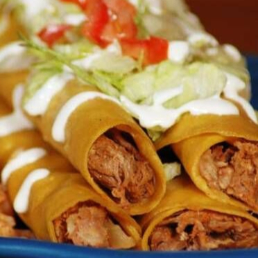 FLAUTAS DE RES ACOMPAÑADOS CON PORCION DE ENSALADA, ARROZ Y FRIJOLES