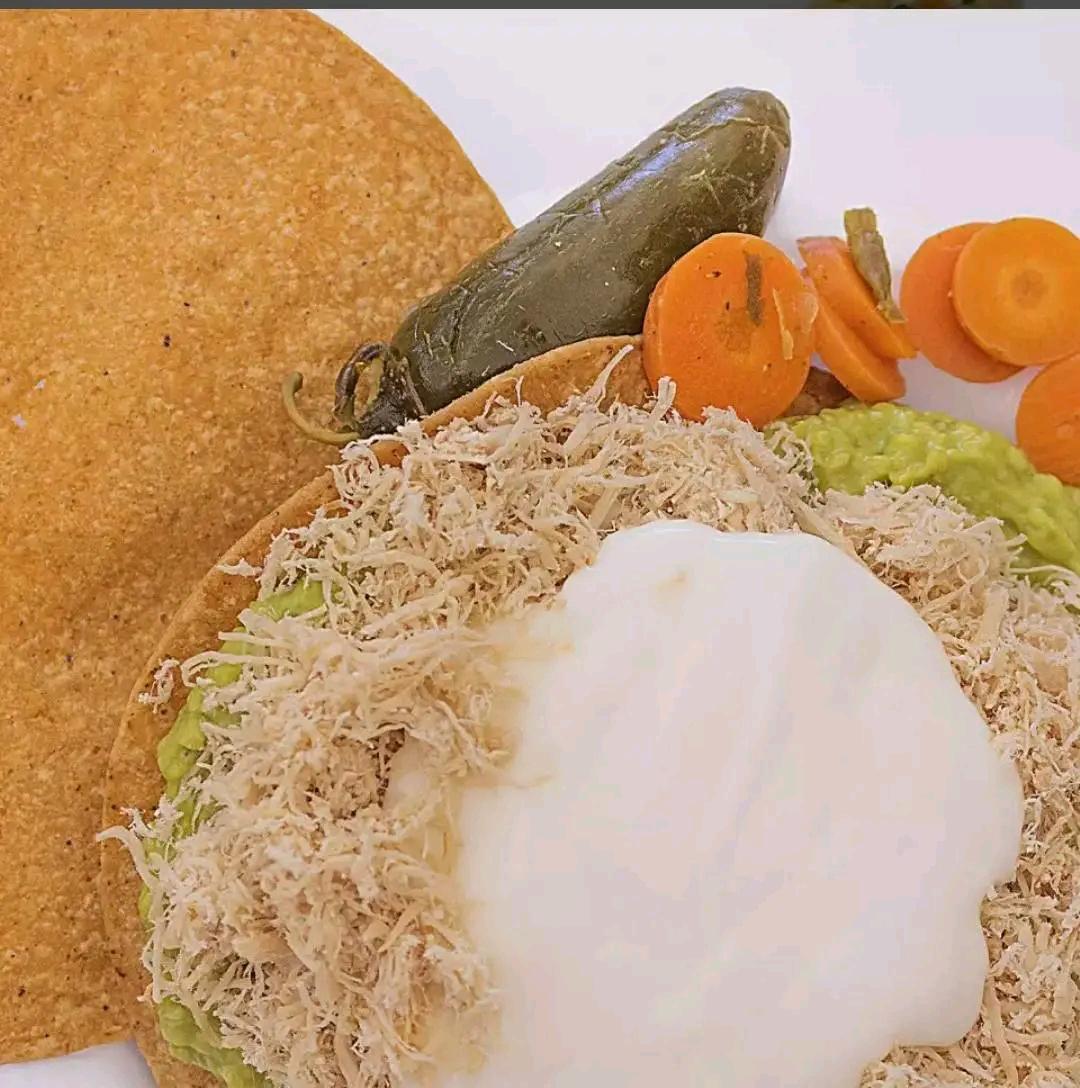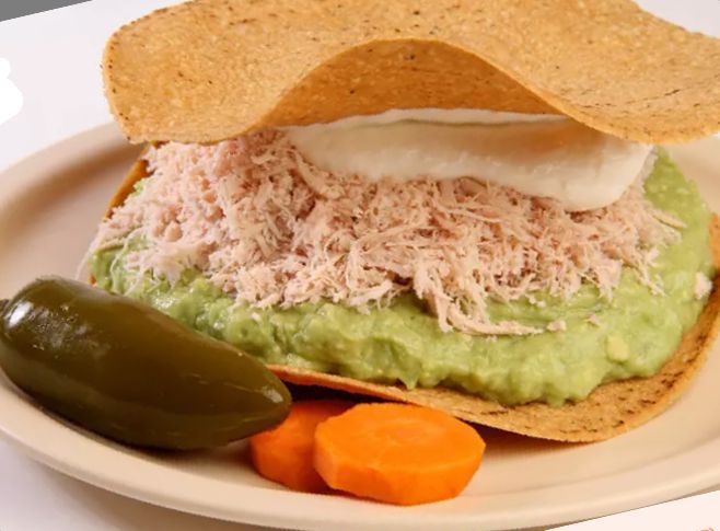 2 Tostadas especiales con delicioso pollo, guacamole y crema