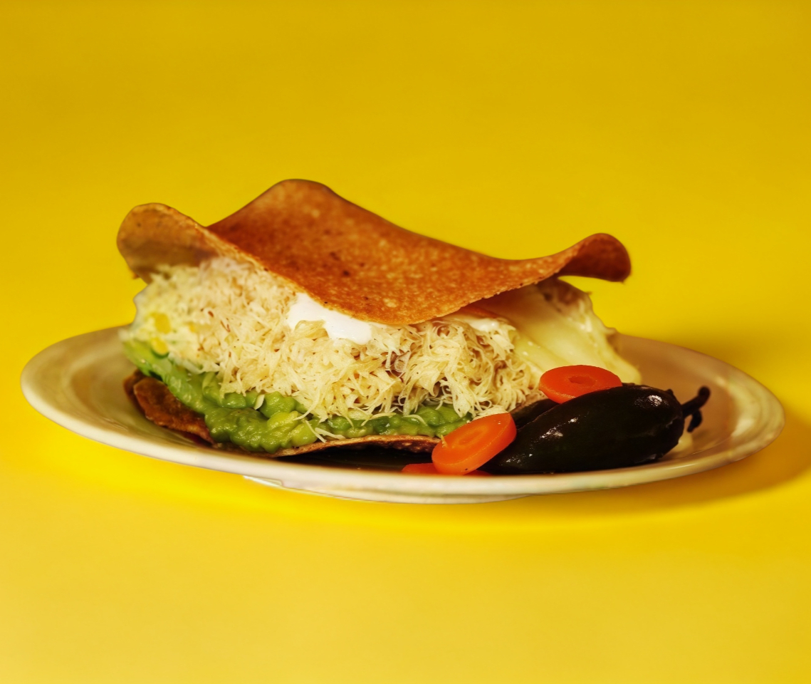 Tostada, consomé 500 ml y refresco Pepsi 355 ml.