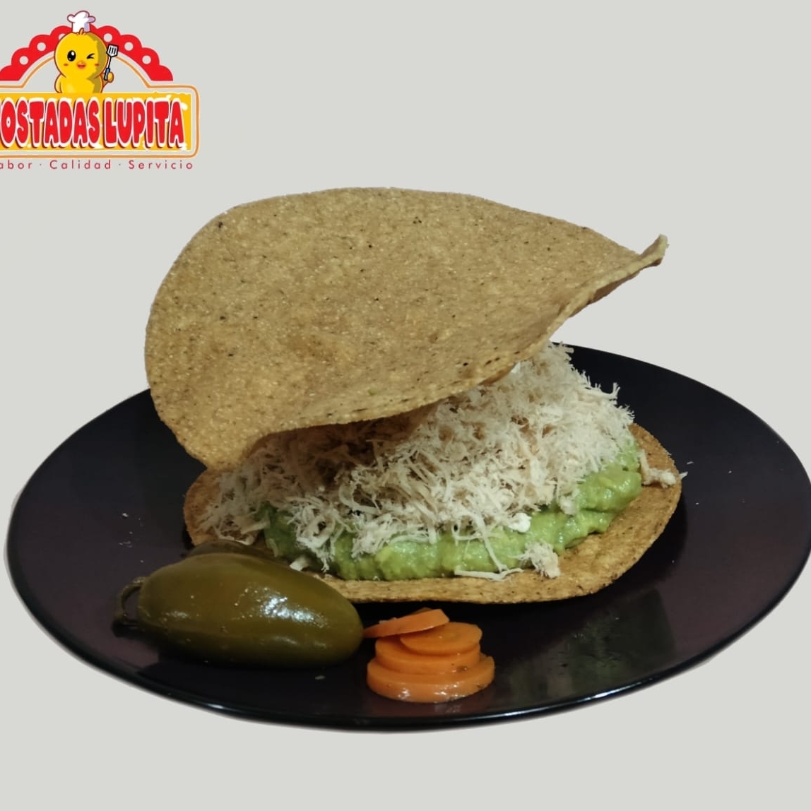 1 tostada grande especial + 1/2 consomé con arroz + refresco de 355 ml.