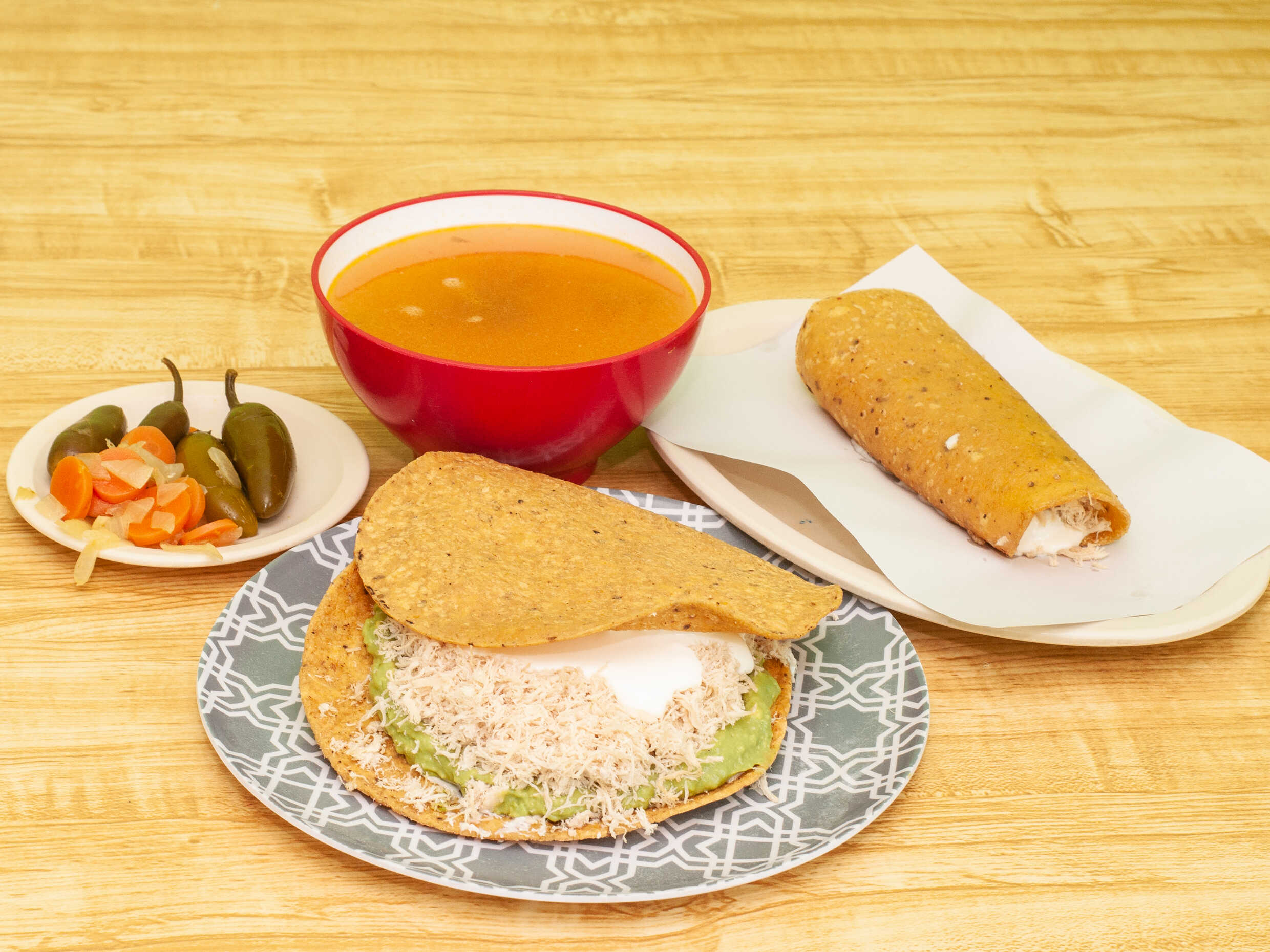 1/2 Consomé*1 + Taco Especial*1 + Tostada Especial**1