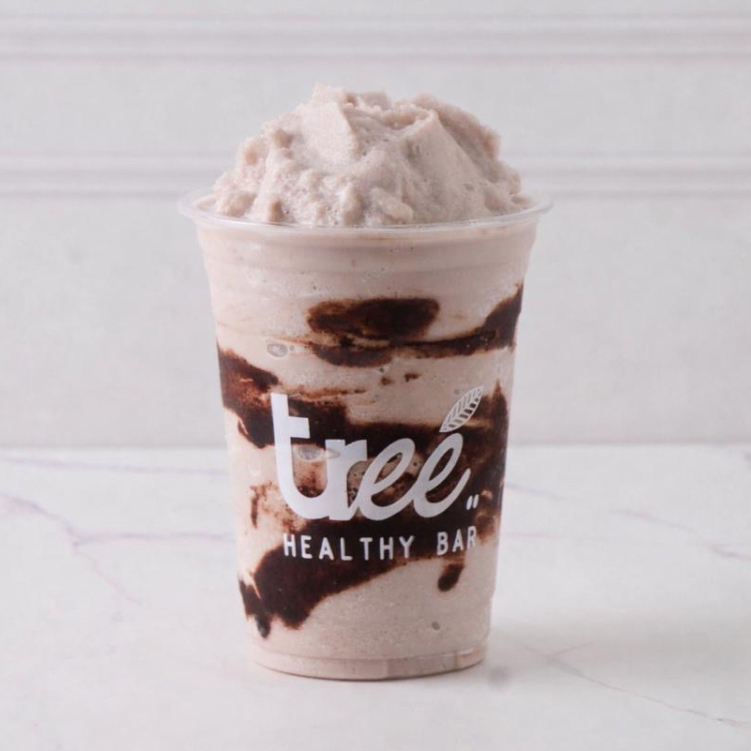 Reese’s Healthy Version: Leche de almendra, plátano, crema de cacahuate, cacao en polvo, sal el Himalaya y vainilla