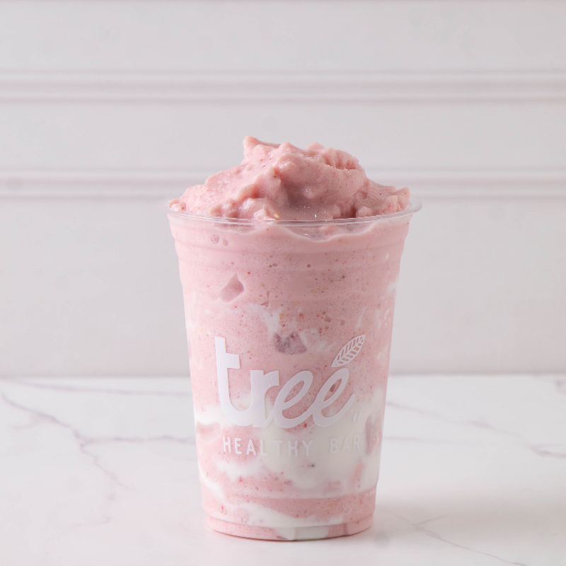 Fresa, mora azul, coco rallado, miel de agave y leche de coco.