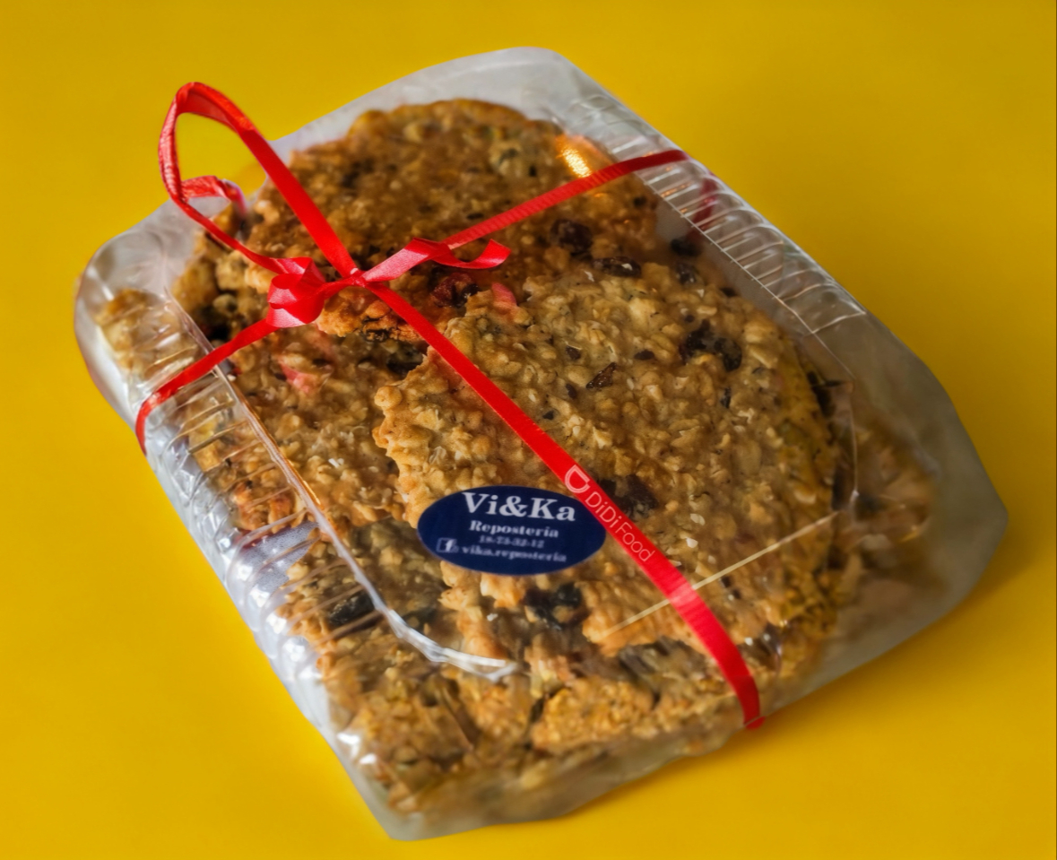 Galleta crocante endulzada con Stevia, linaza, avena, nuez y pasas.